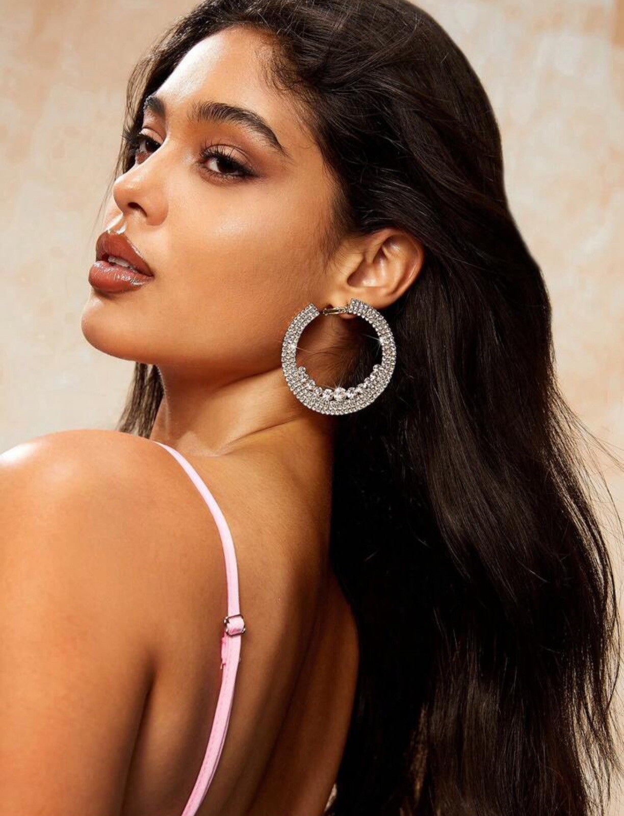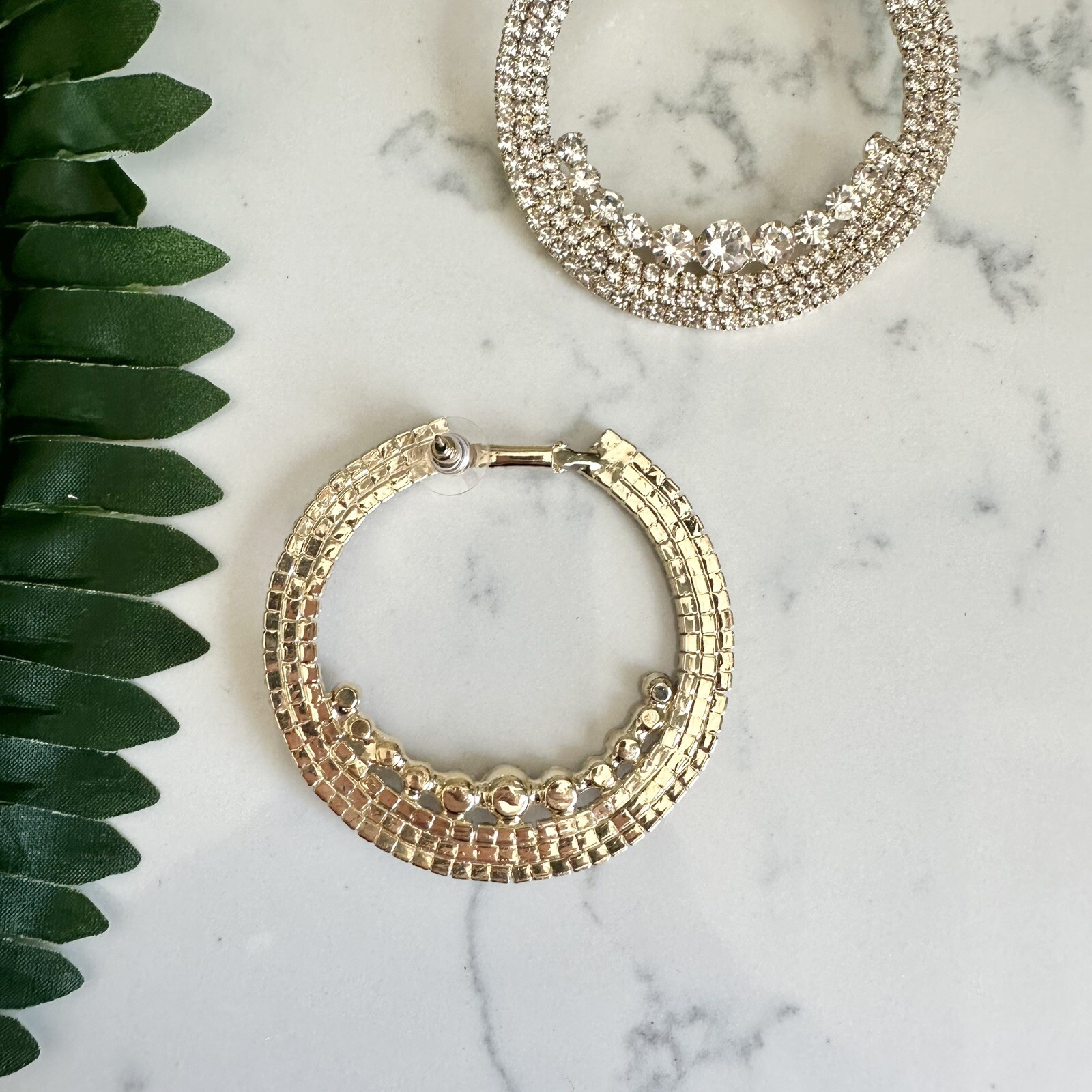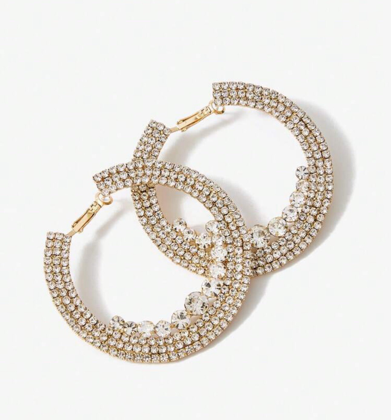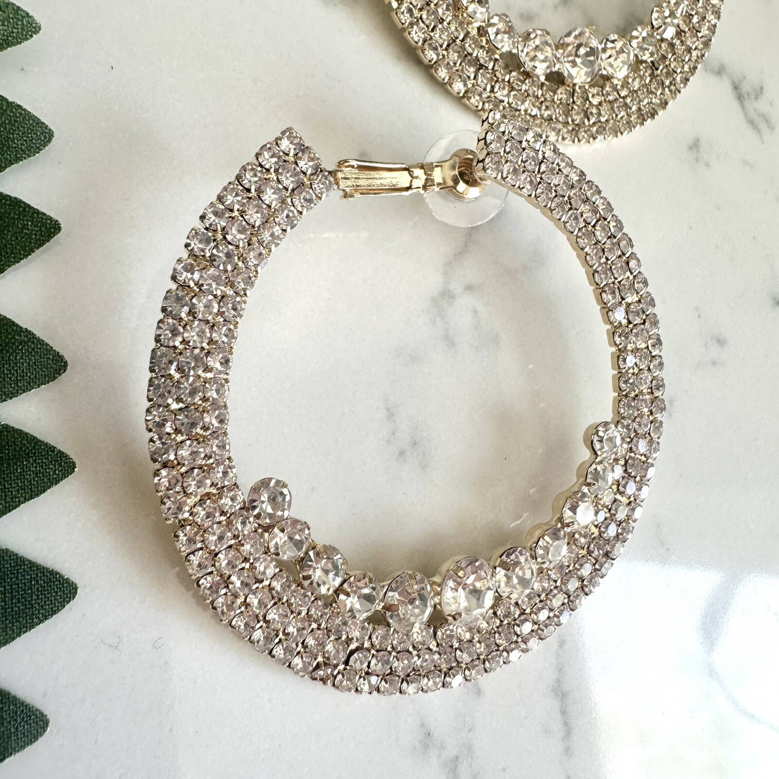 Large Rhinestone Hoop Circle Earrings Crystal Sparkle Jewelry Gift Dressy NEW
