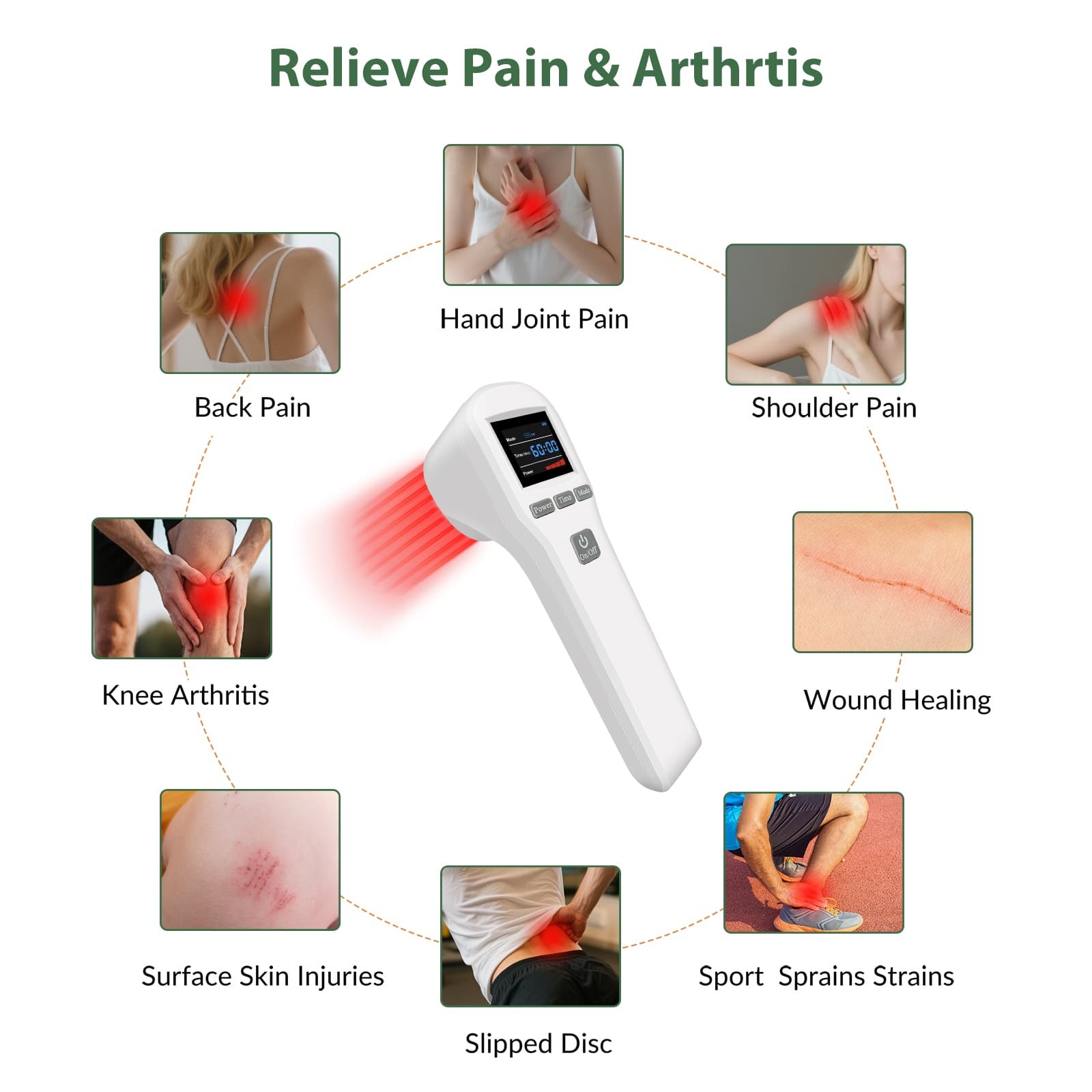 Main Purpose: Arthritis, Fibromyalgia, Headache, Inflammation, Soft Tissue Repair, Accelerate Wound Healing, Sprains, Increases Metabolism, Muscle Relaxation, Joints Pain