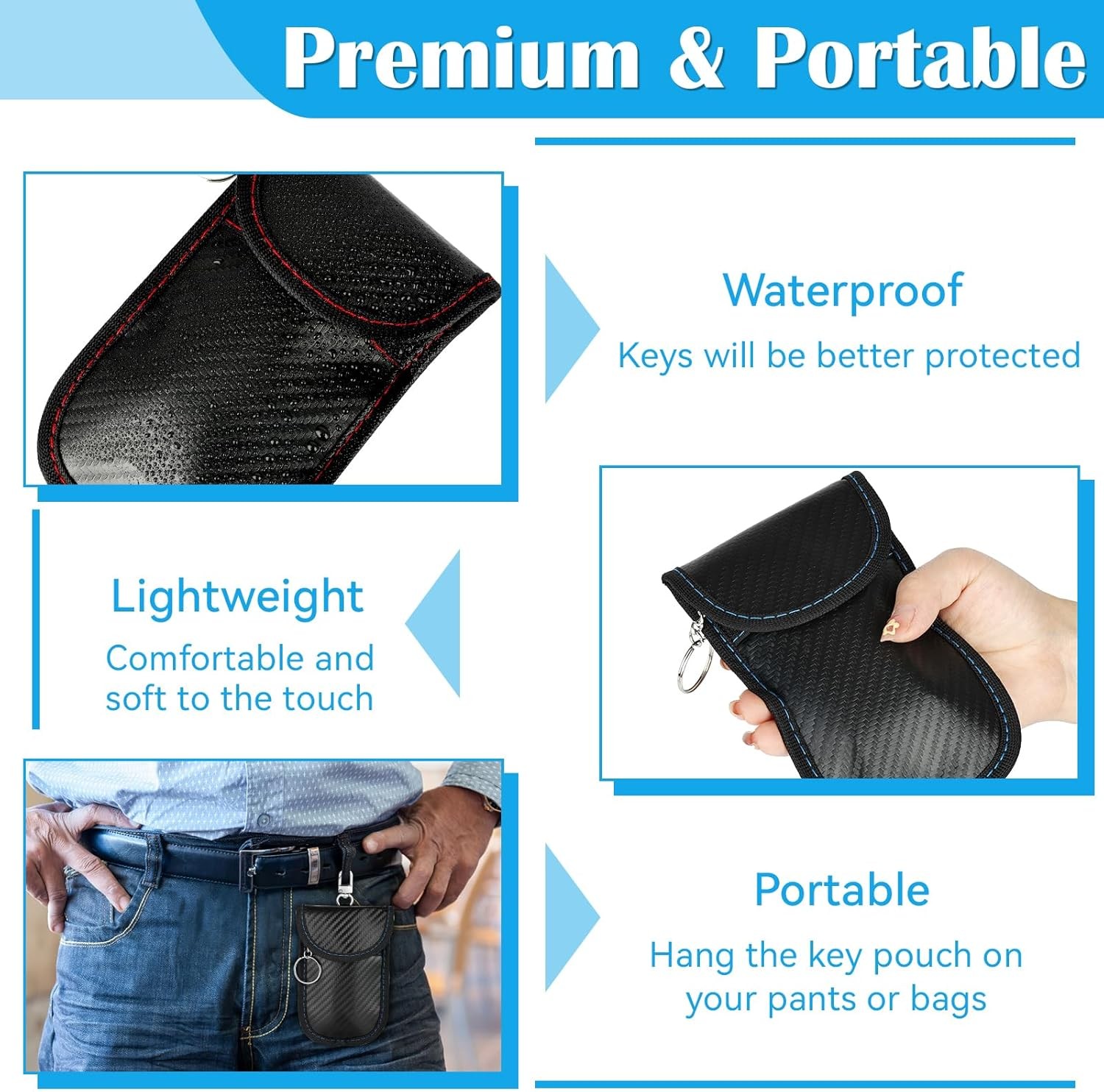 2 Pack Faraday Key Fob Protector, Premium Car RFID Signal Small, Red Blue