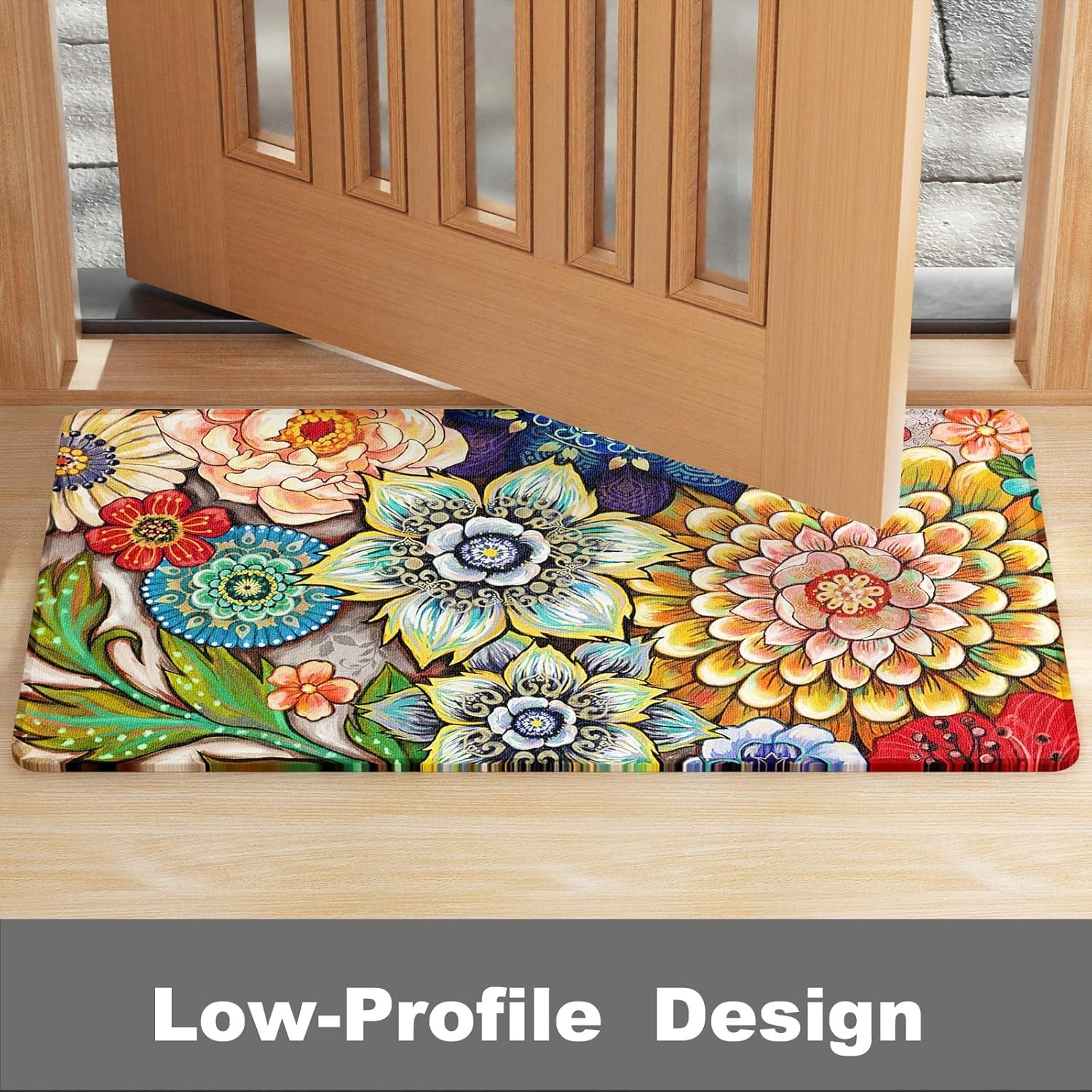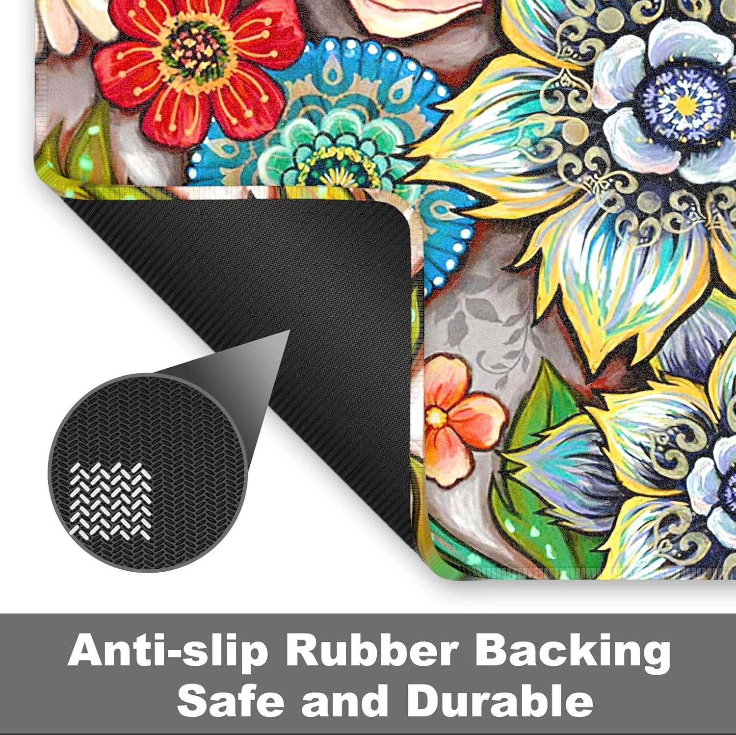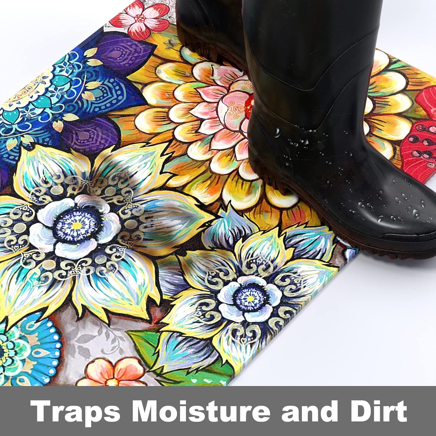 Front Door Mat, 30x17 Flower Theme Indoor Outdoor Welcome Mat, Heavy Duty