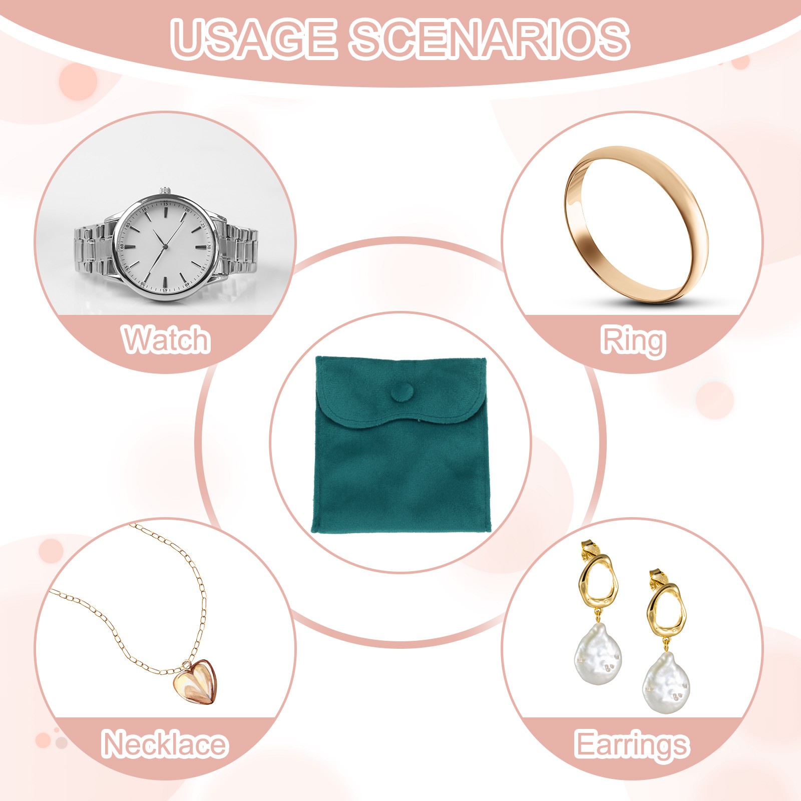 12 Pcs 6x4 Inch Velvet Jewelry Pouches Gift Bags with Snap Button Dark Green