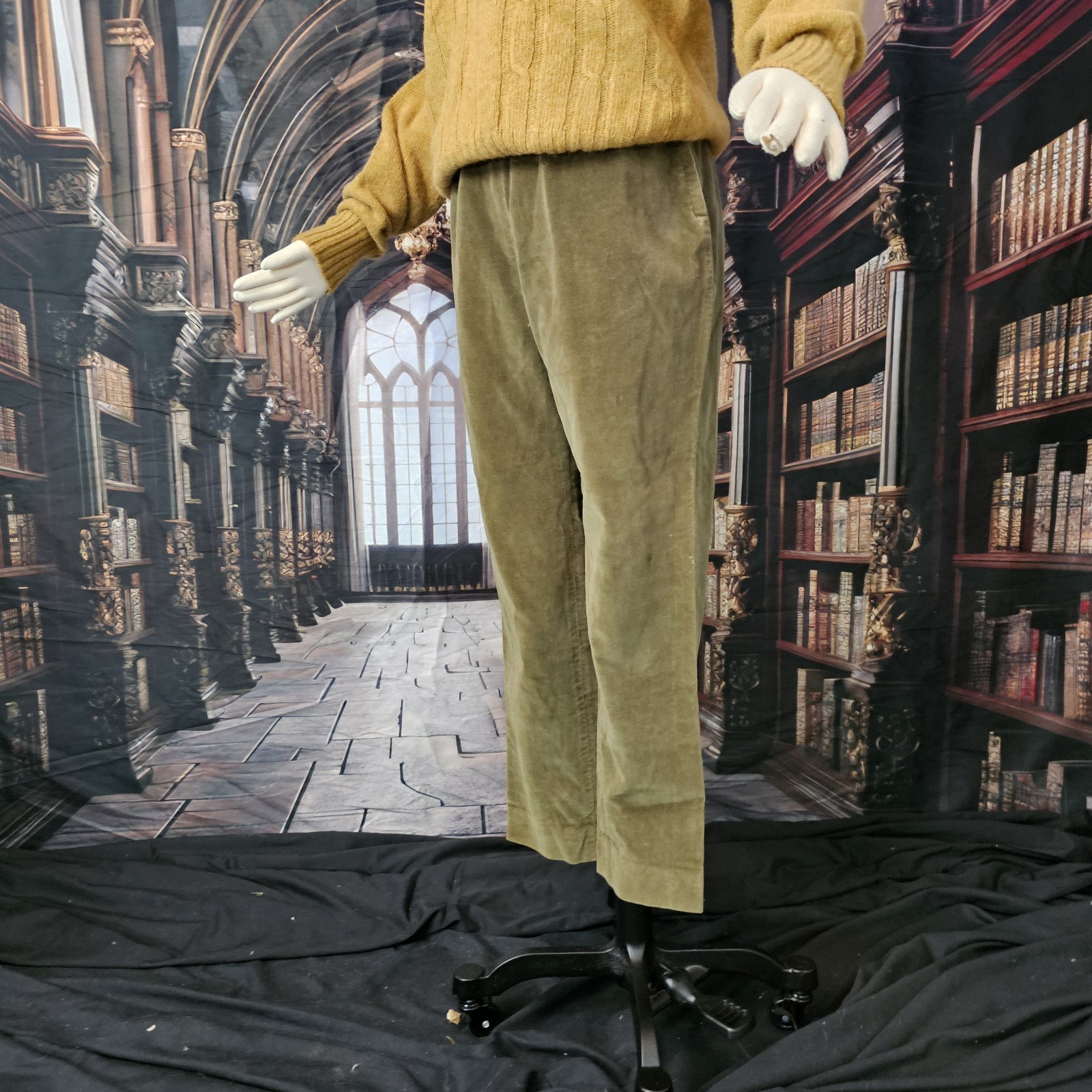 как выглядит Vintage 1960s Pants Trousers Olive Khaki Green Velour Side Zip Retro фото