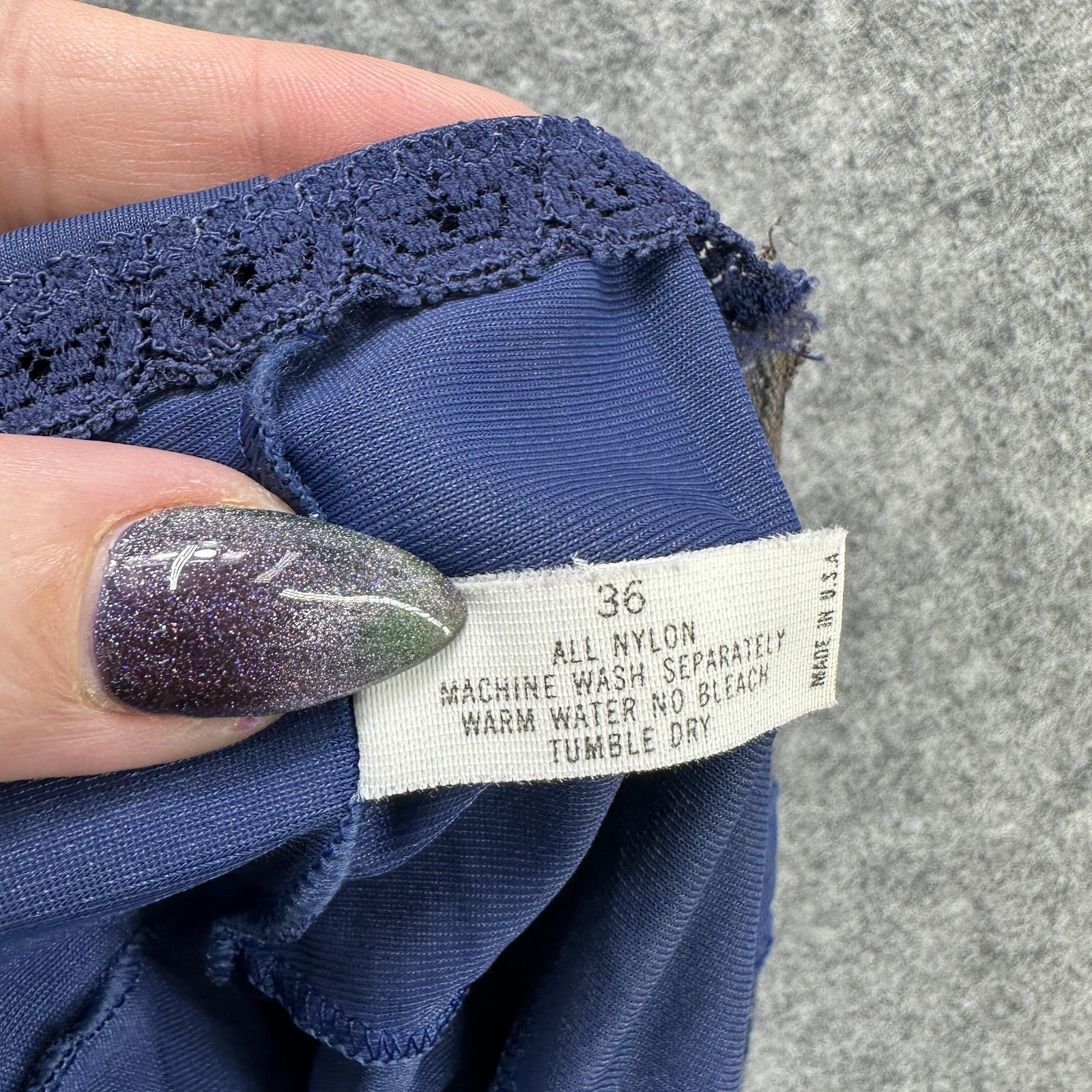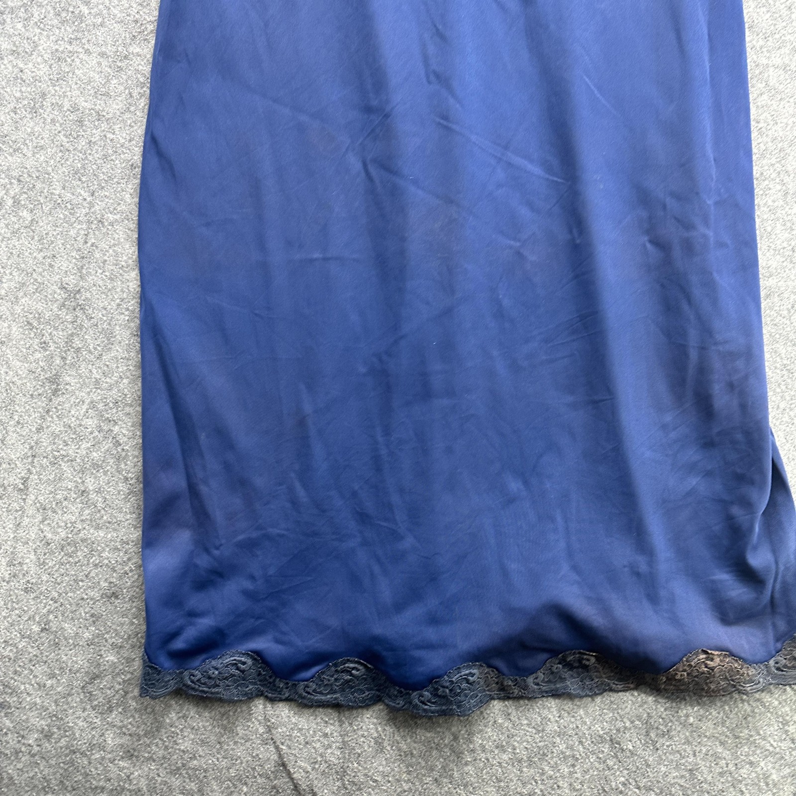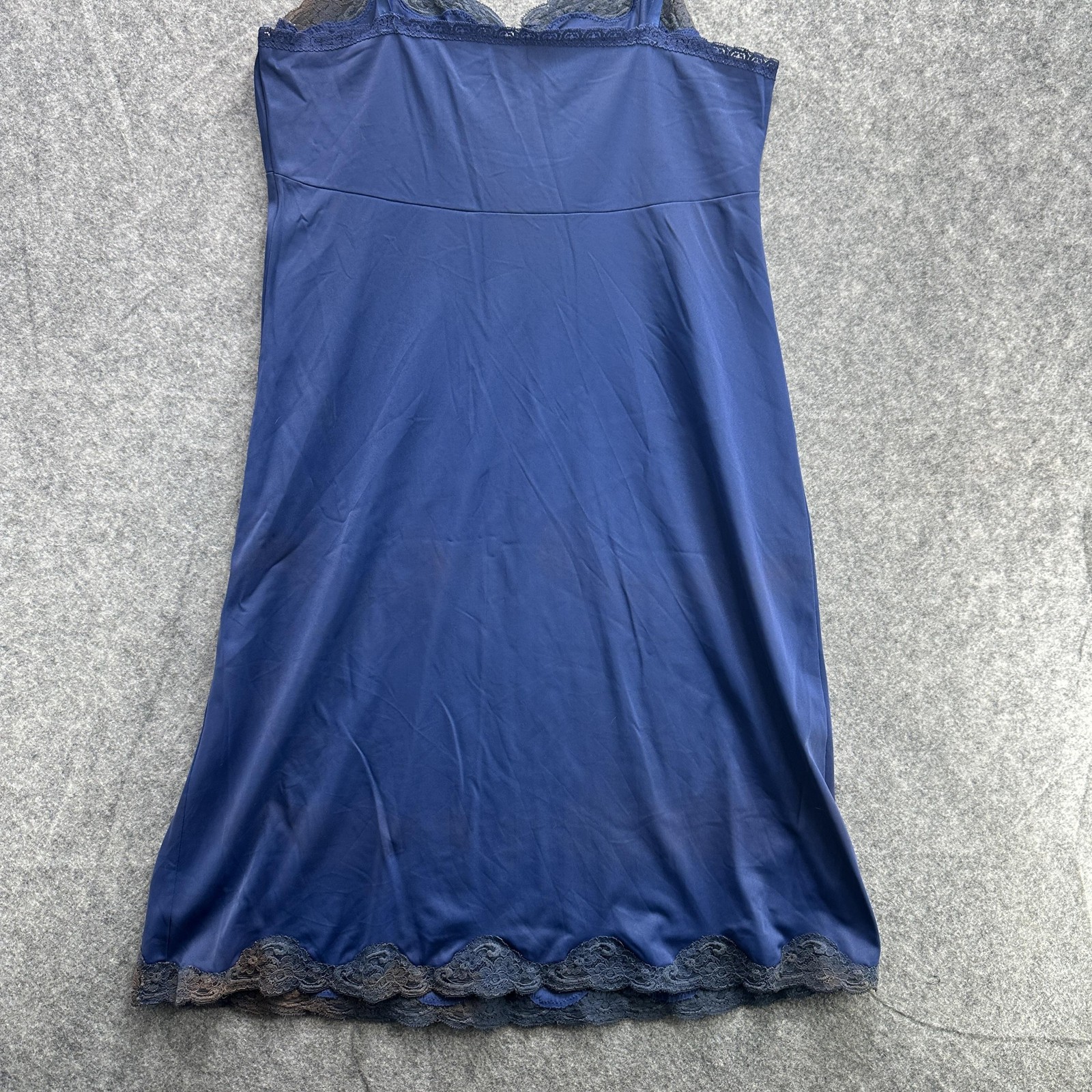 как выглядит Vintage Shadowline Slip Dress Womens 36 Blue Nylon Lace Nightgown Made USA фото