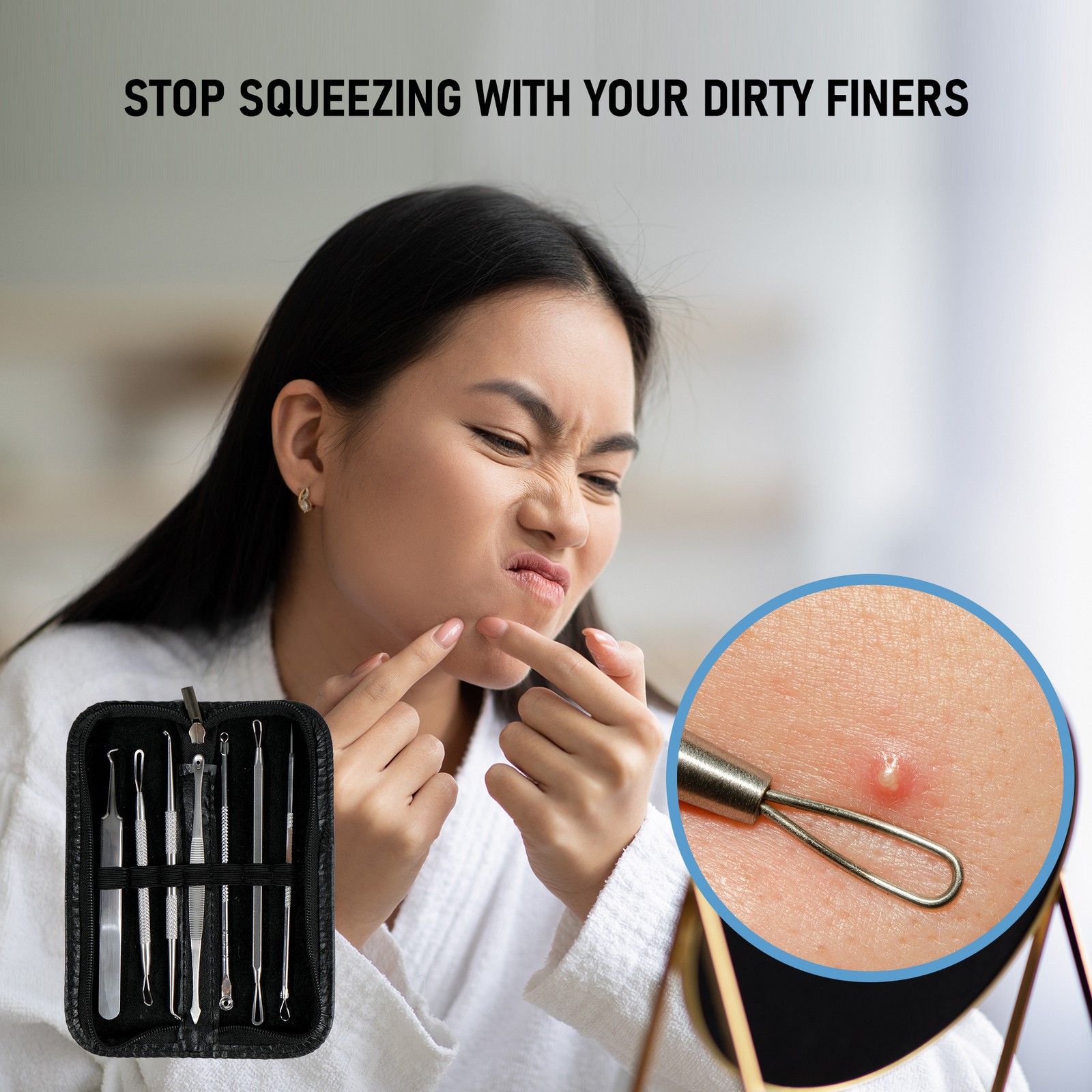 7PCS Acne Needle Blackhead Remover Pimple Comedone Extractor Tool with Tweezer