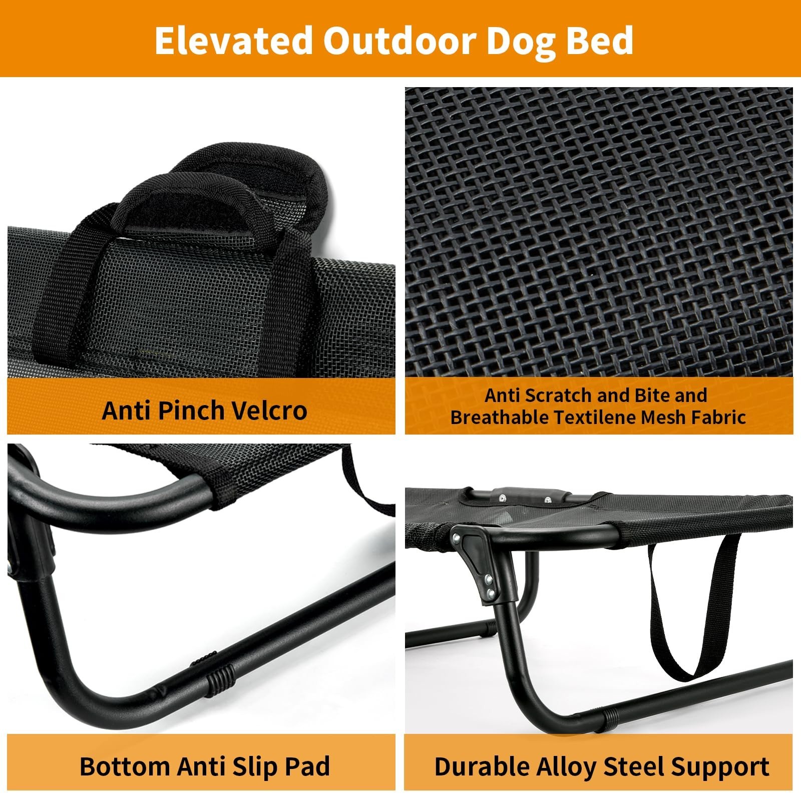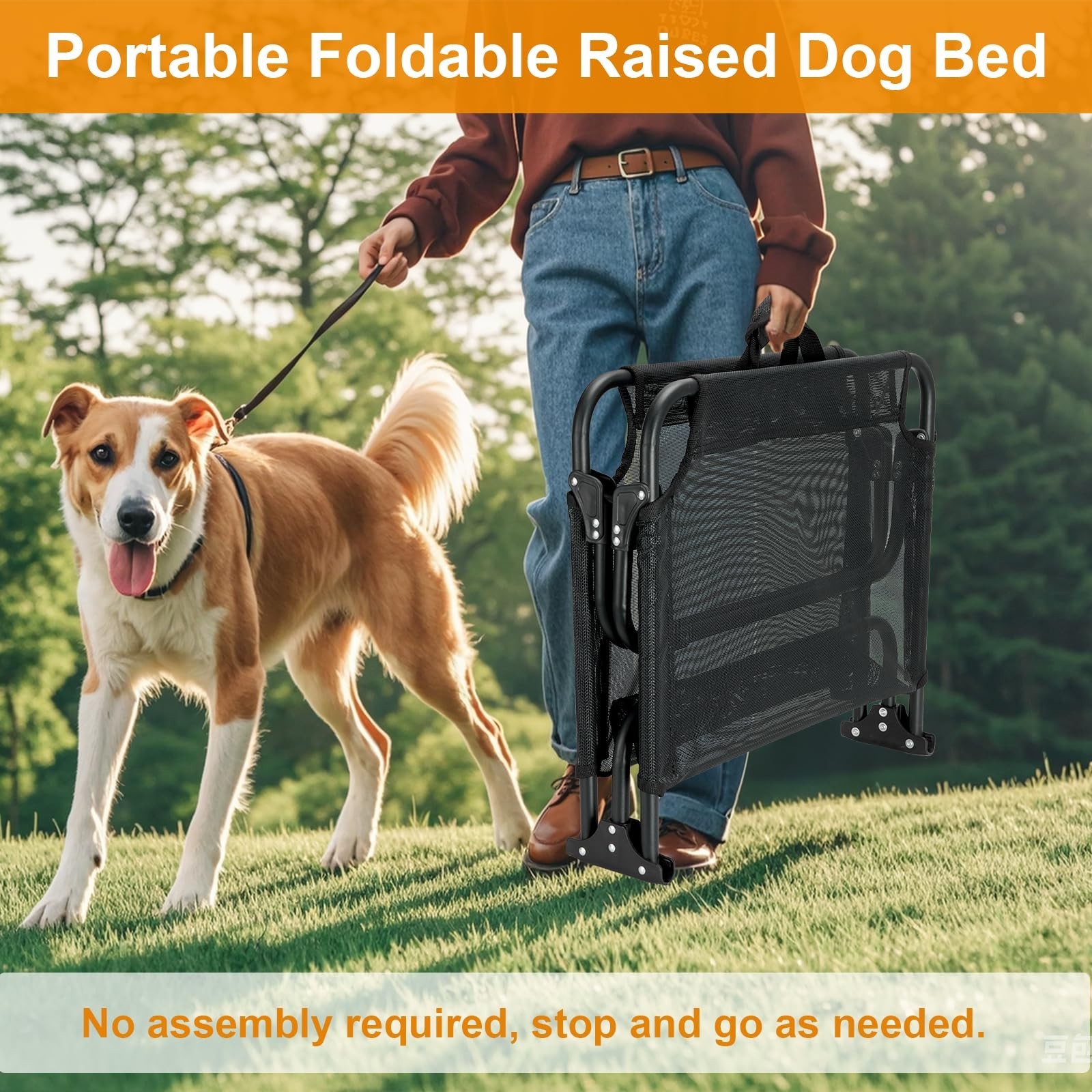 Outdoor Foldable Raised Dogs Bed for Large Pet, No-Assembly-Need Elevated Dog...
