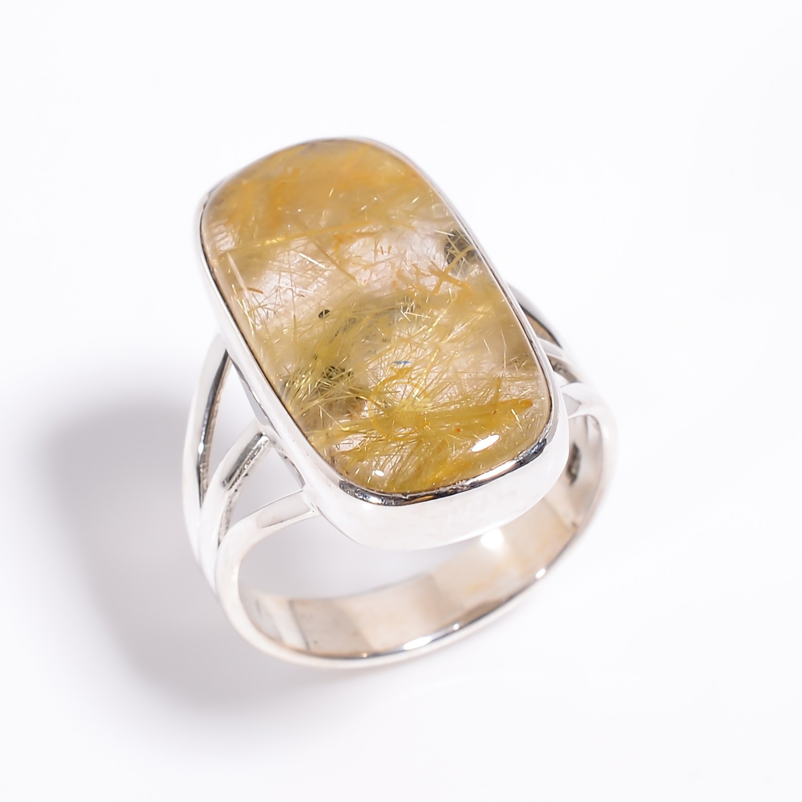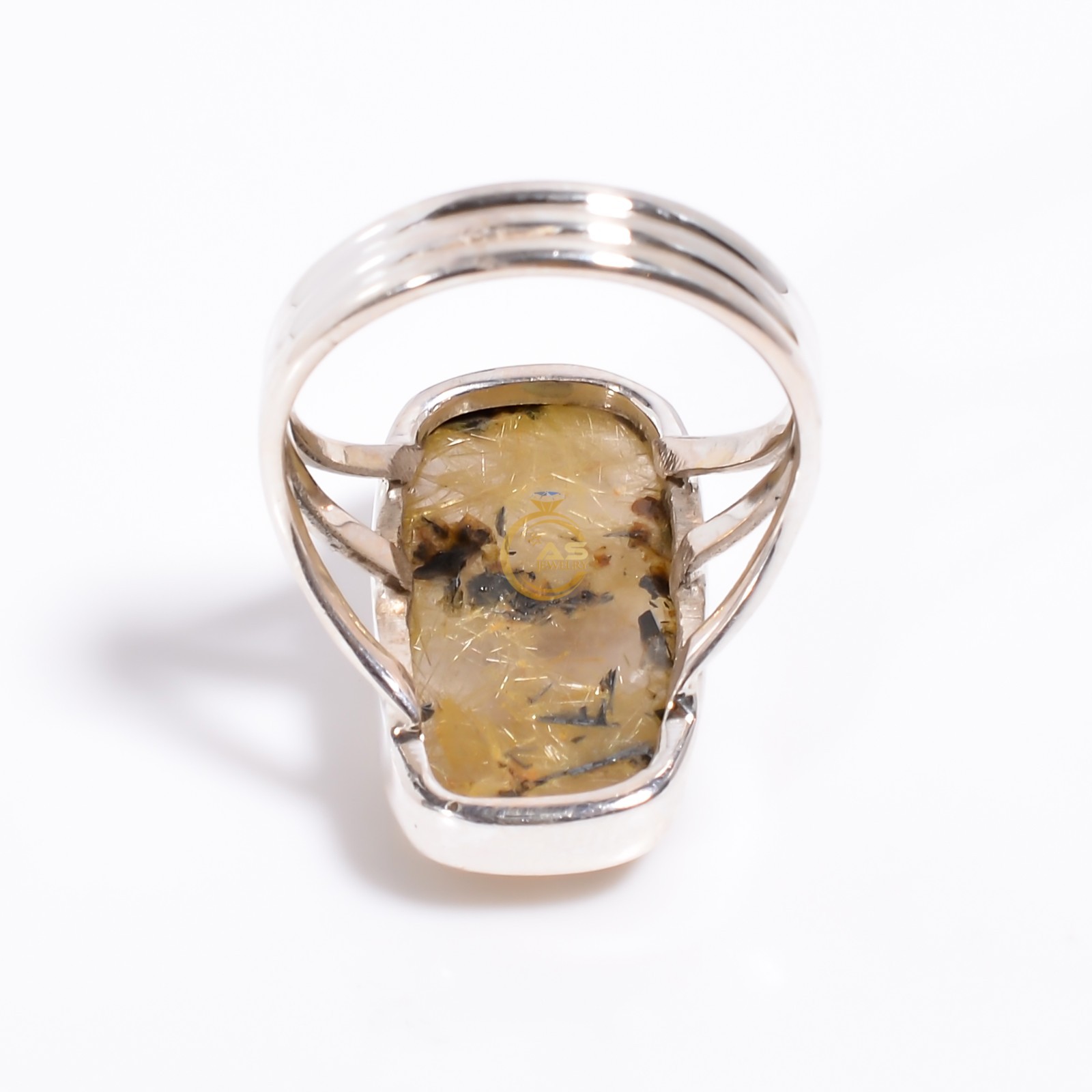 Golden Rutilated Quartz Ring 925 Sterling Silver Handmade Statement Jewelry