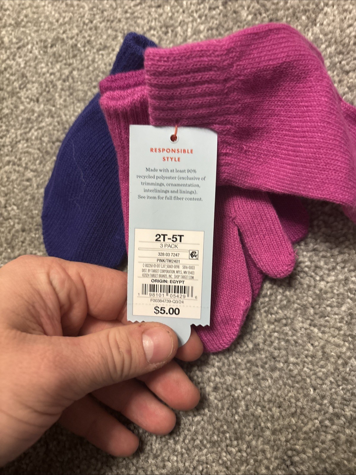 2 Toddler Mittens 3 Pack Cat Jack Pink Magenta Purple 2T-5T Gloves. NWT.