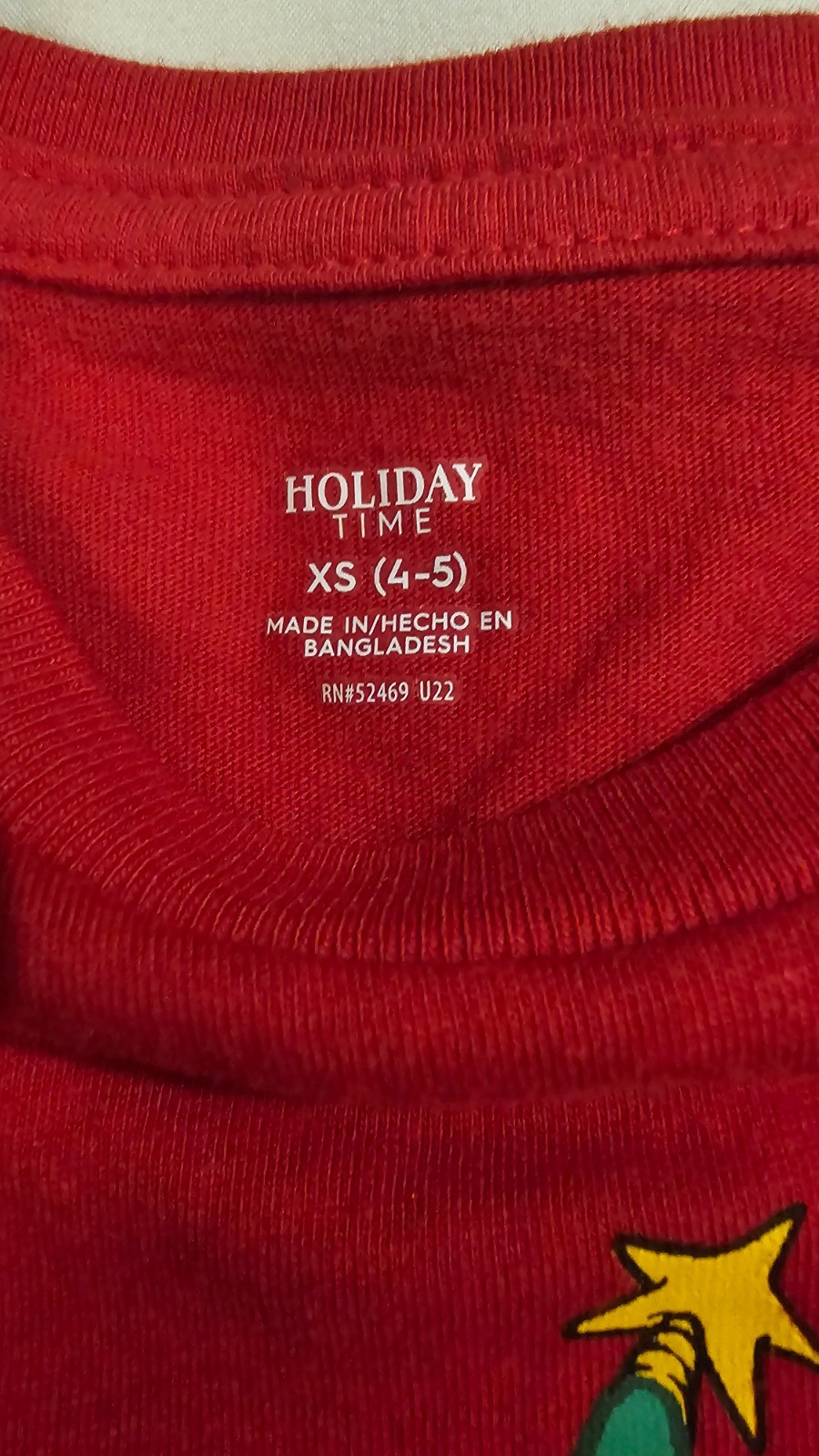 Holiday Time Kids Long Sleeve Christmas Tree Graphic Tee Red XS 4 5 Unisex Red