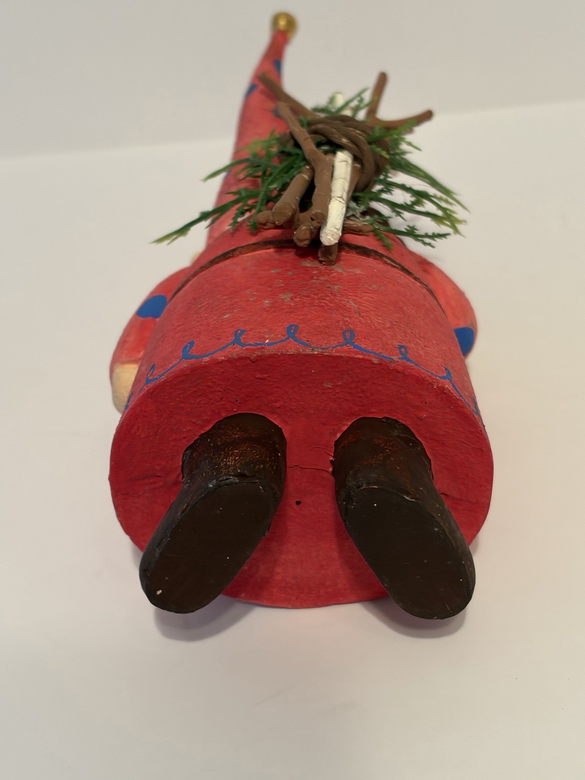 SANTA GNOME WITH BUNDLE OF STICKS RED WHITE BLUE RESIN RUSTIC 8 INCHES