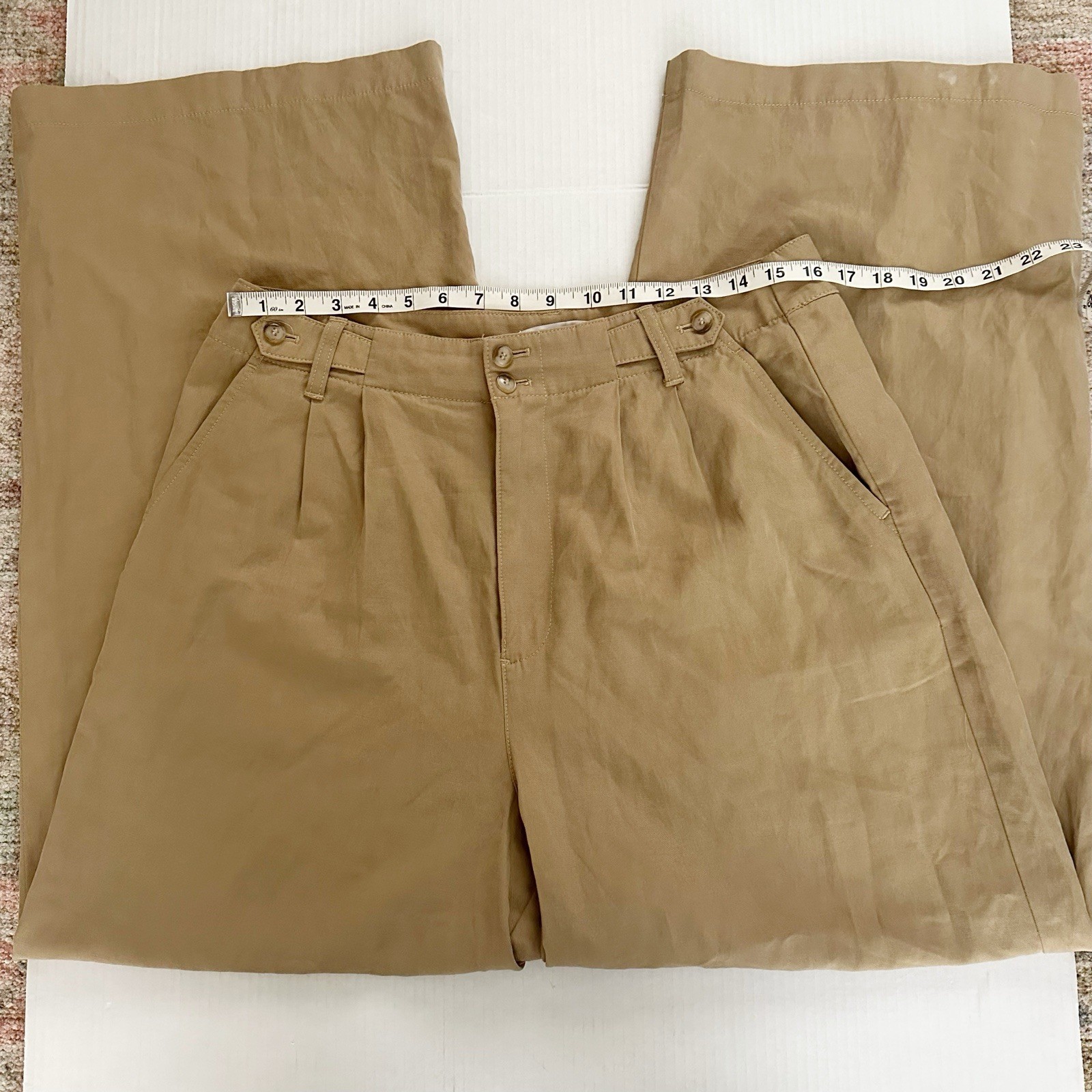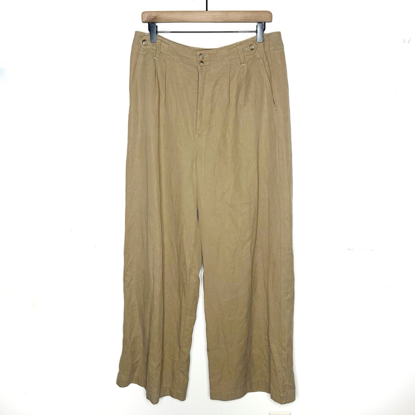 как выглядит Madewell The Harlow Wide Leg Pants Tan Khaki Linen Blend NG521 Women s Size 12 фото