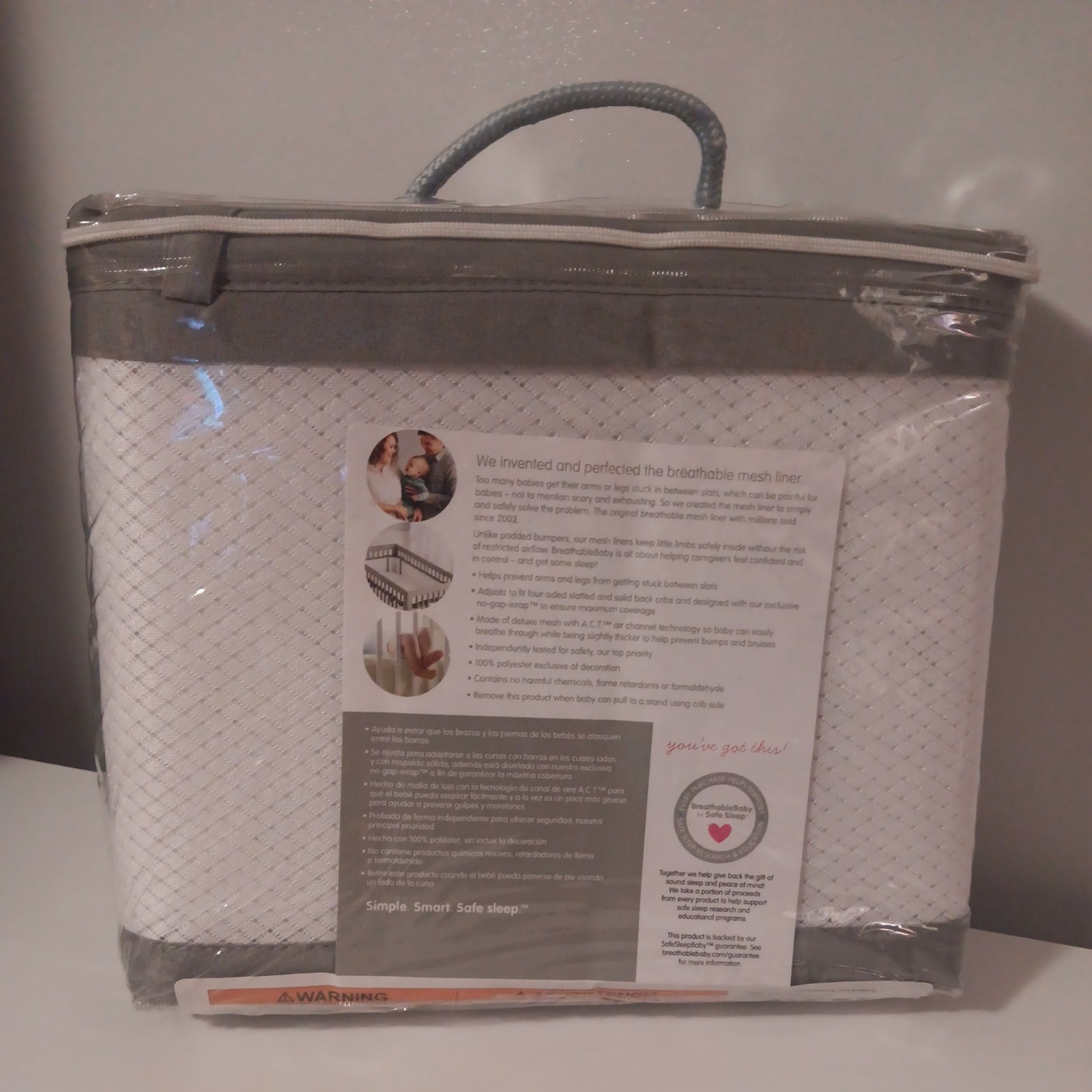 Breathable Baby Mesh Crib Liner Deluxe Linen Collection Grey Boarder