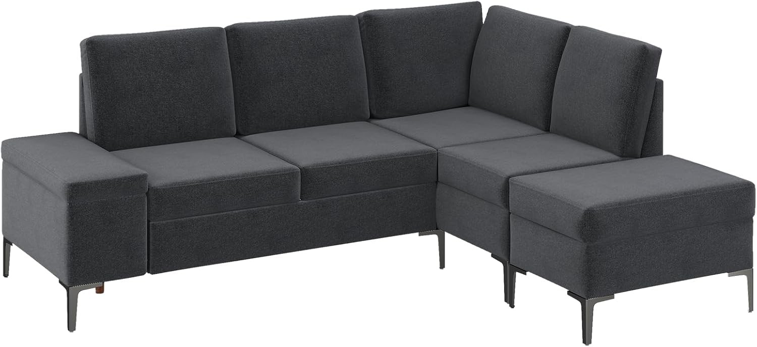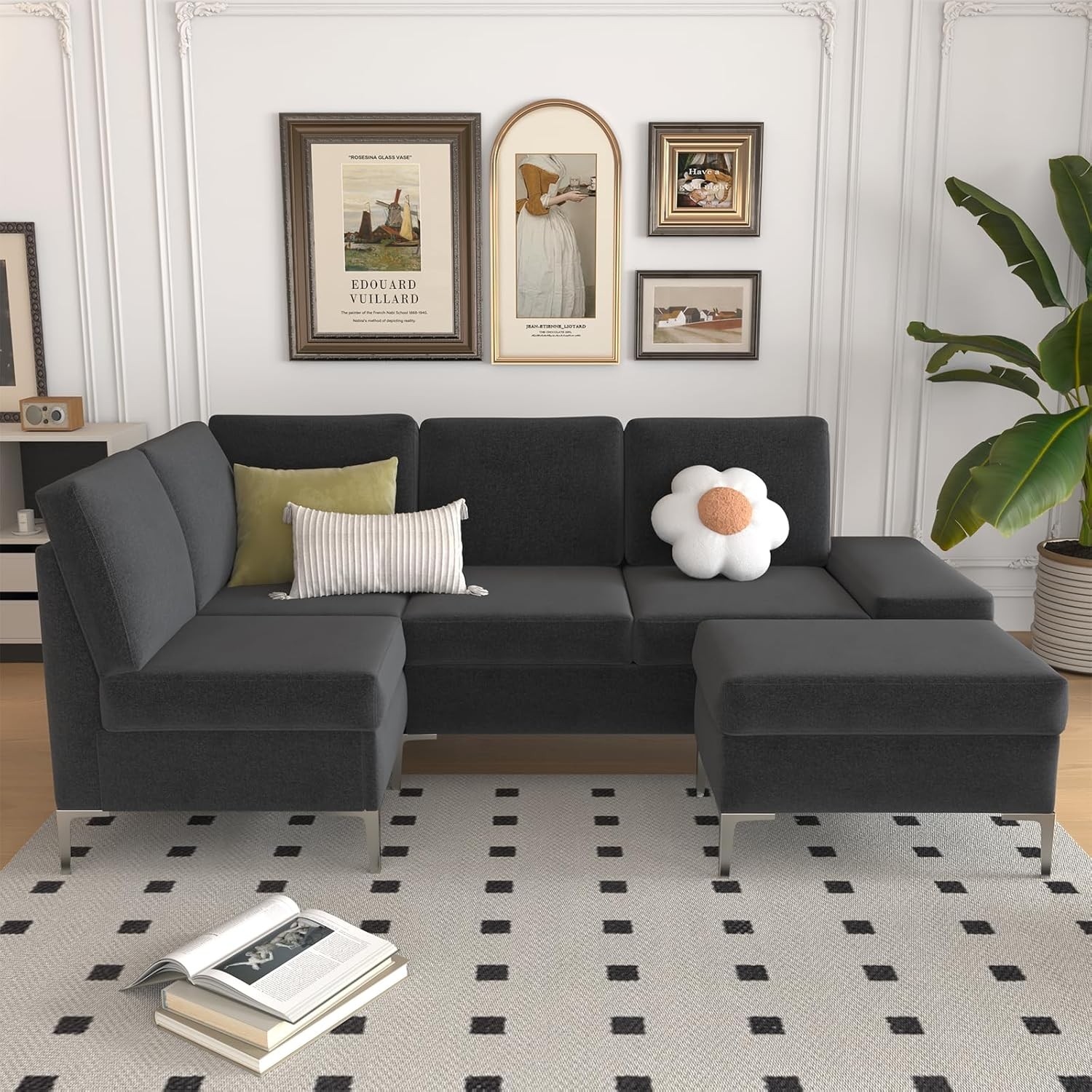L Shaped Sectional Couch with Chaise Ottoman 3 Pieces Modular Convertible Sofa