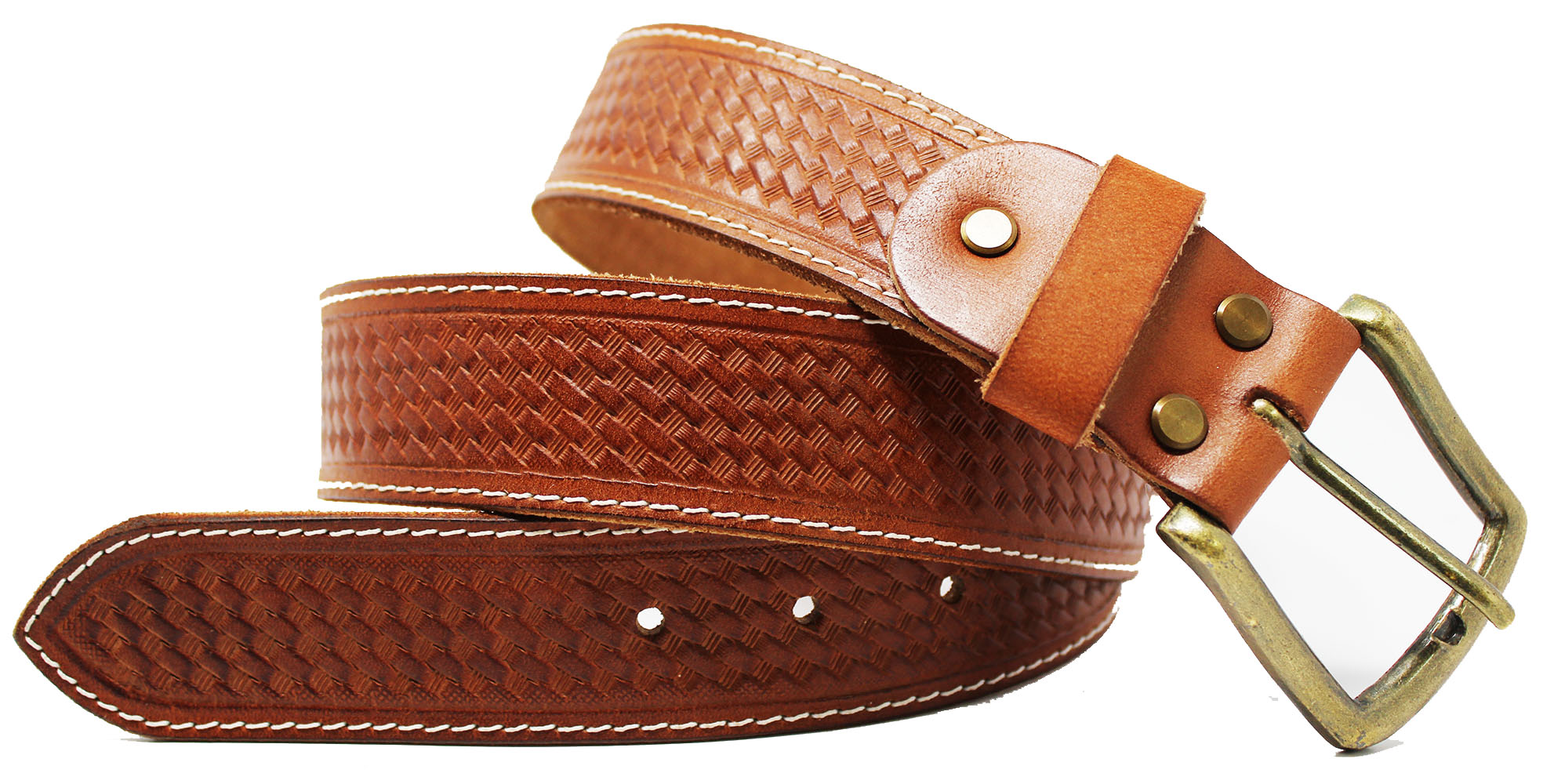 как выглядит Mens 1 1/2" Wide Basket Weave Western Leather Tooled Casual Jean Belt 12AA90 фото