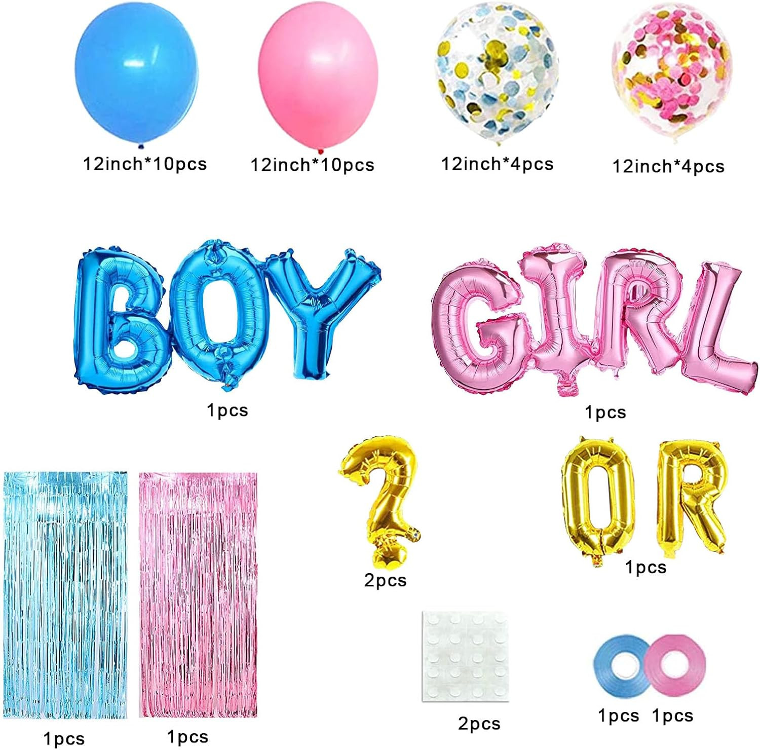 Gender Reveal Party Supplies Kit, Pink and Blue Balloons , Boy or Girl Foil Ball