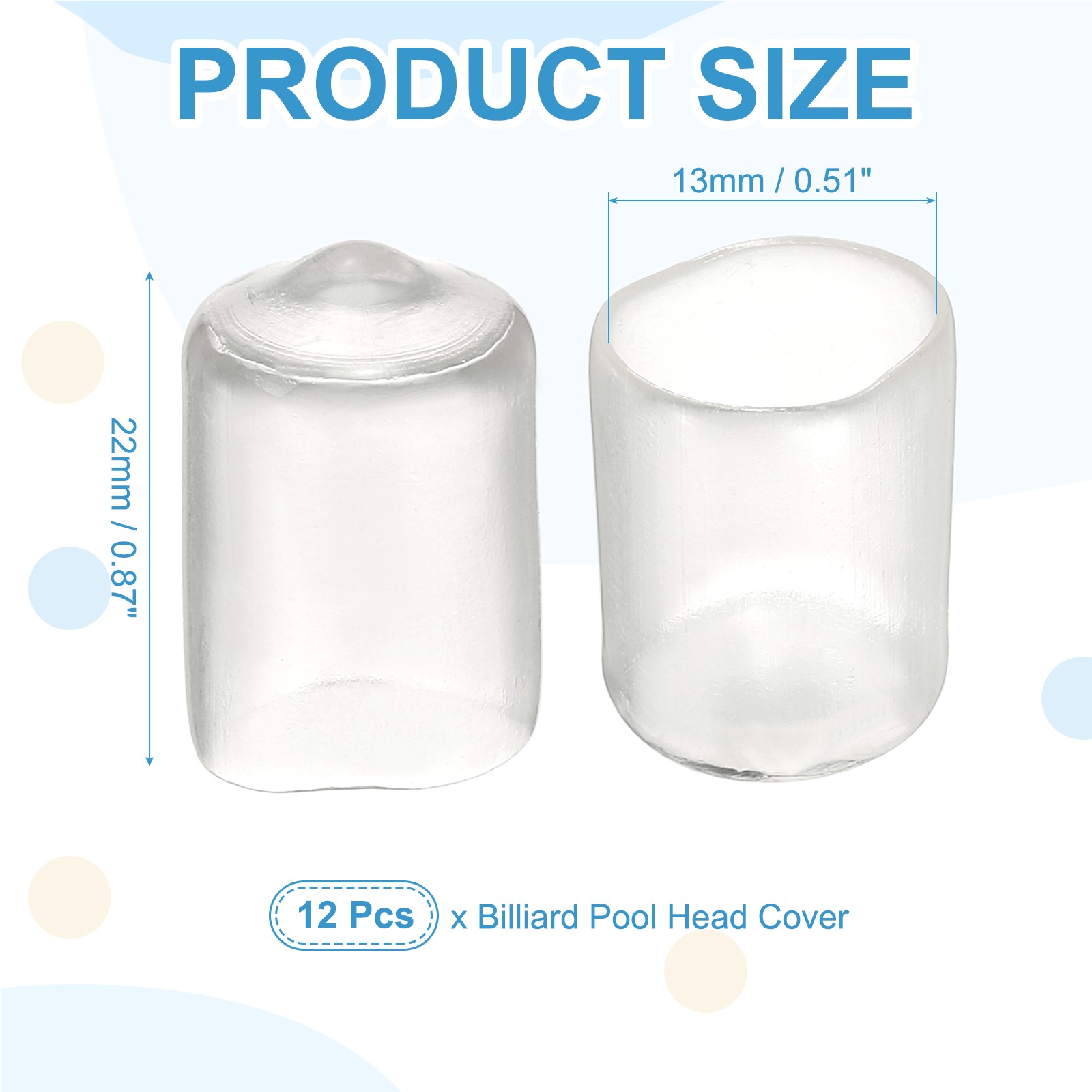 Pool Tip Cover Rubber Cue Protector Billiard Pool Cover 13mm 12Pcs Transparent