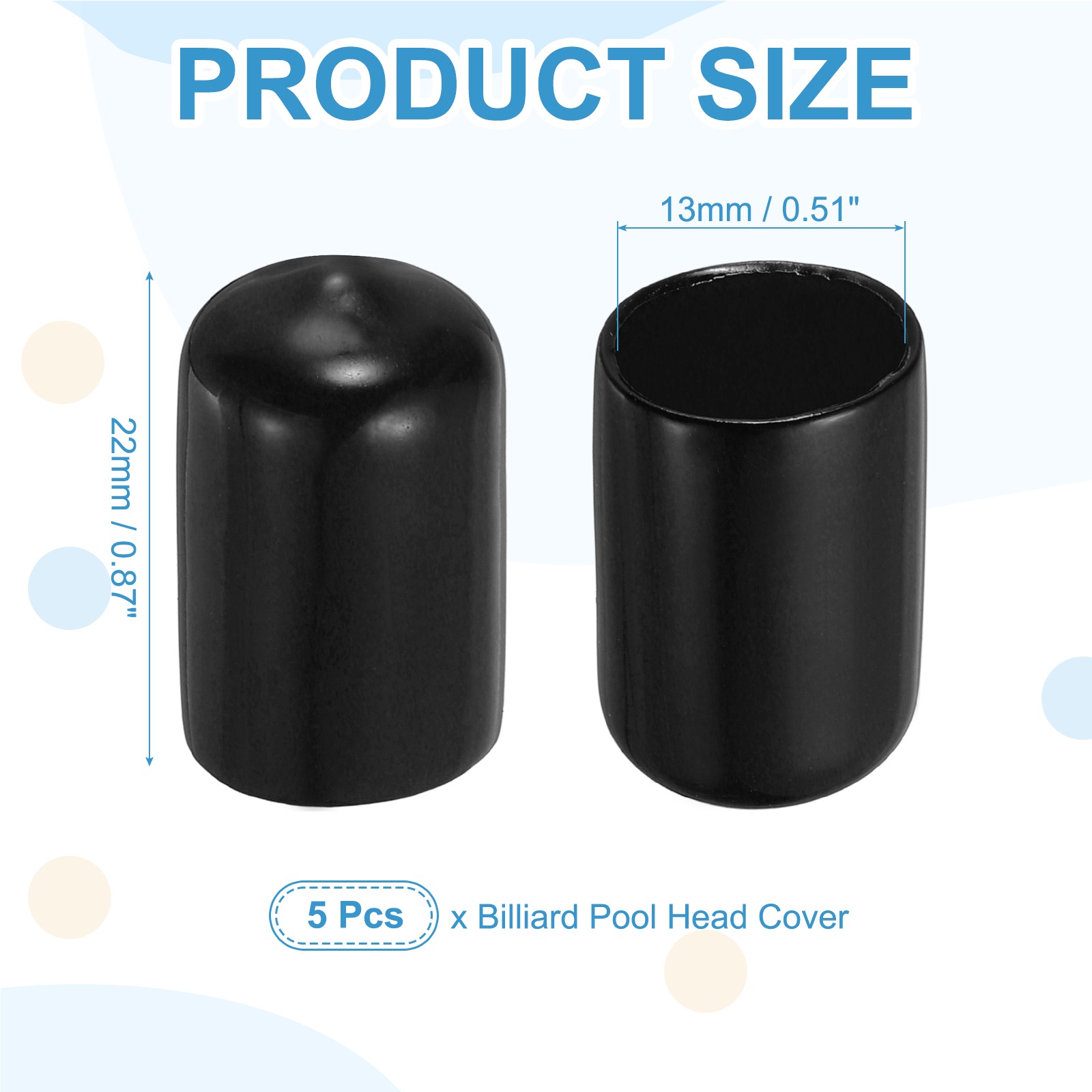 Pool Tip Cover Rubber Cue Protector Billiard Pool Cover 13mm 5Pcs Black