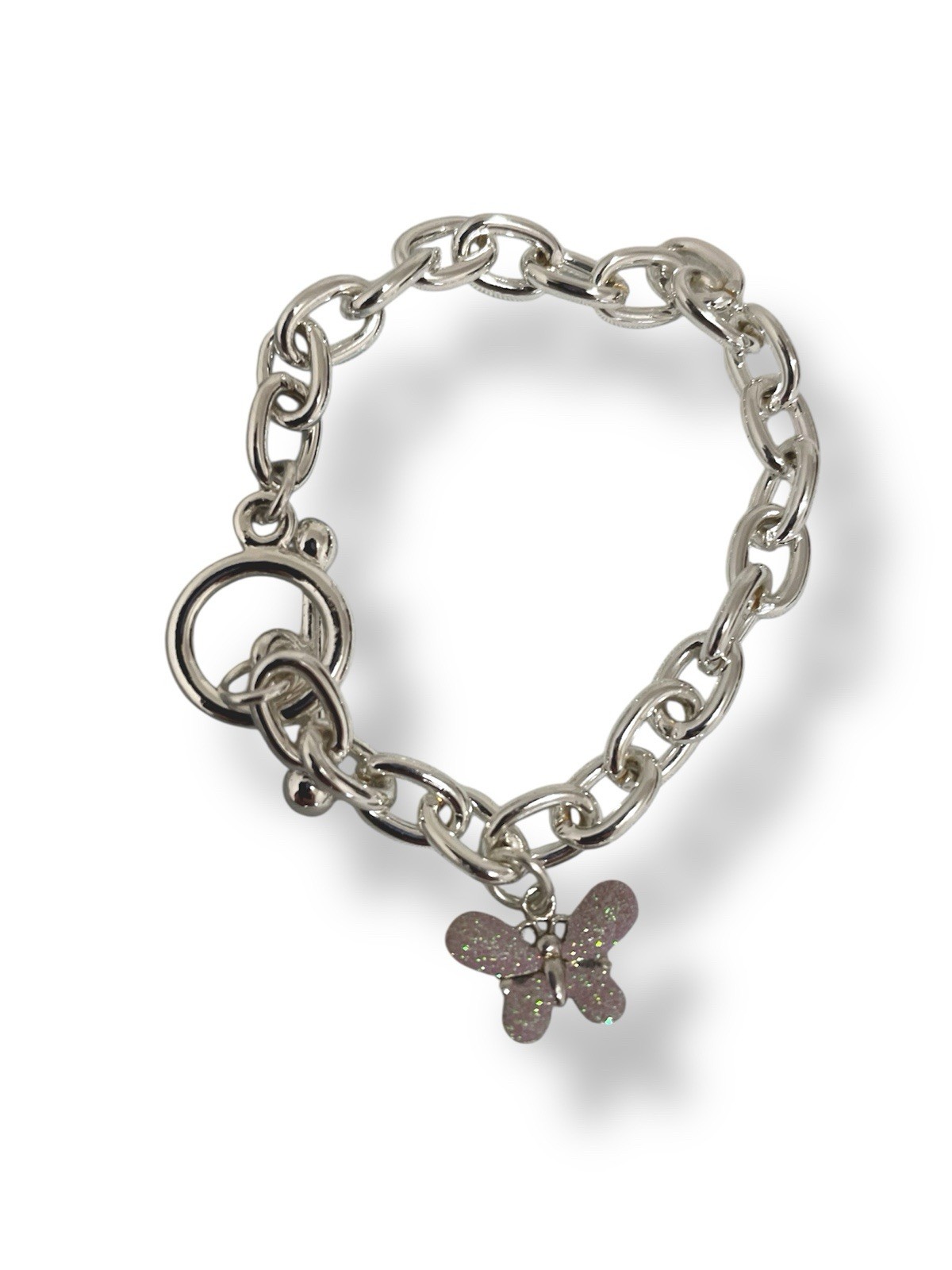 Silver Link Bracelet with Butterfly Charm