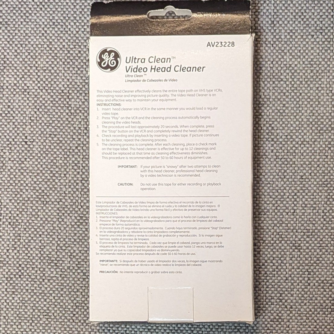 GE VHS Ultra Clean Video Head Cleaner Cleans Entire Tape Path