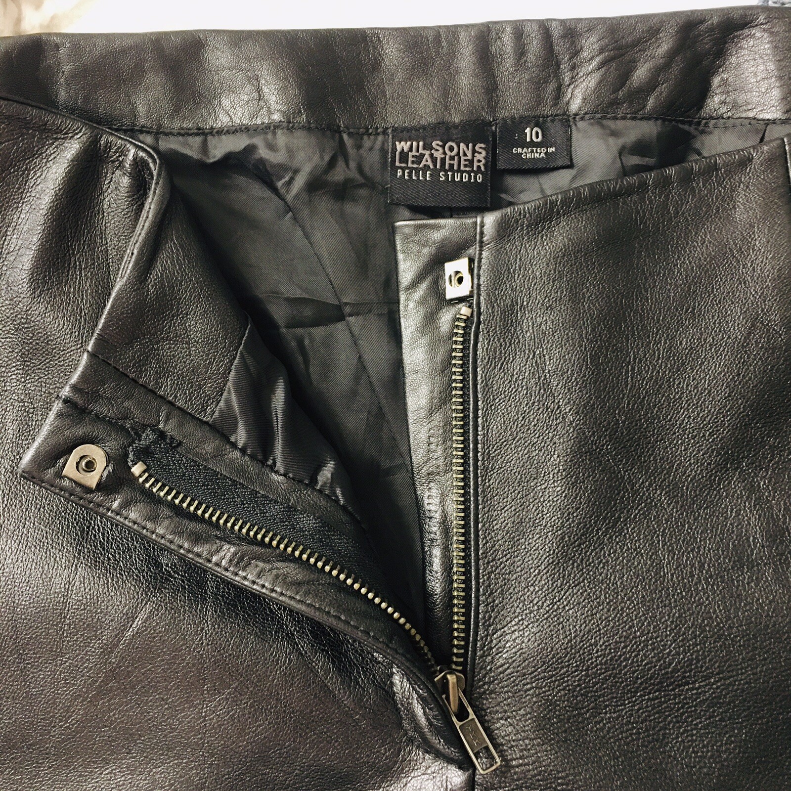 как выглядит Wilsons Pelle Studio Leather Pants Sz 10 Maxima Black Genuine Leather Wide Leg фото