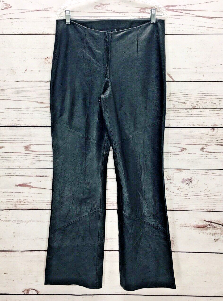 Wilsons Pelle Studio Leather Pants Sz 10 Maxima Black Genuine Leather Wide Leg