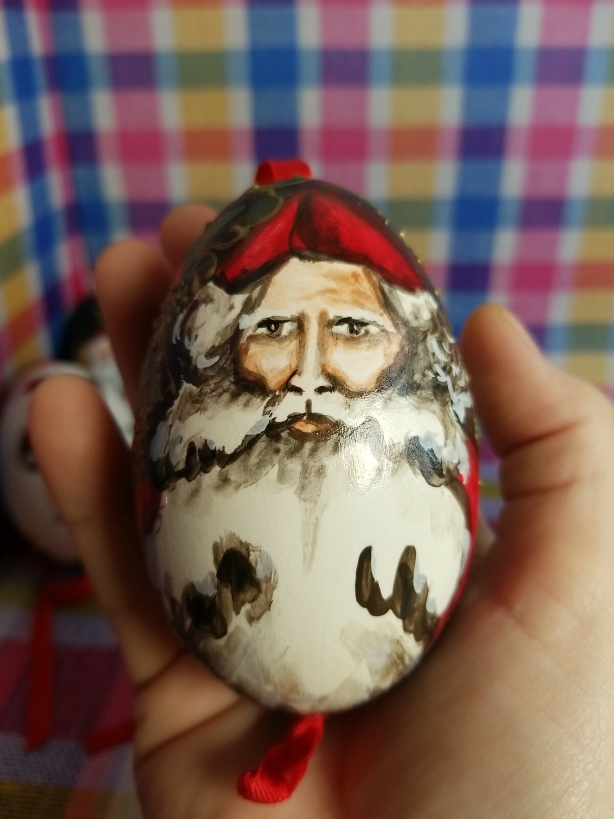 как выглядит 4 Santa Claus Handpainted Folk Art Christmas Large Real Egg Decor 3.5" Mix Media фото