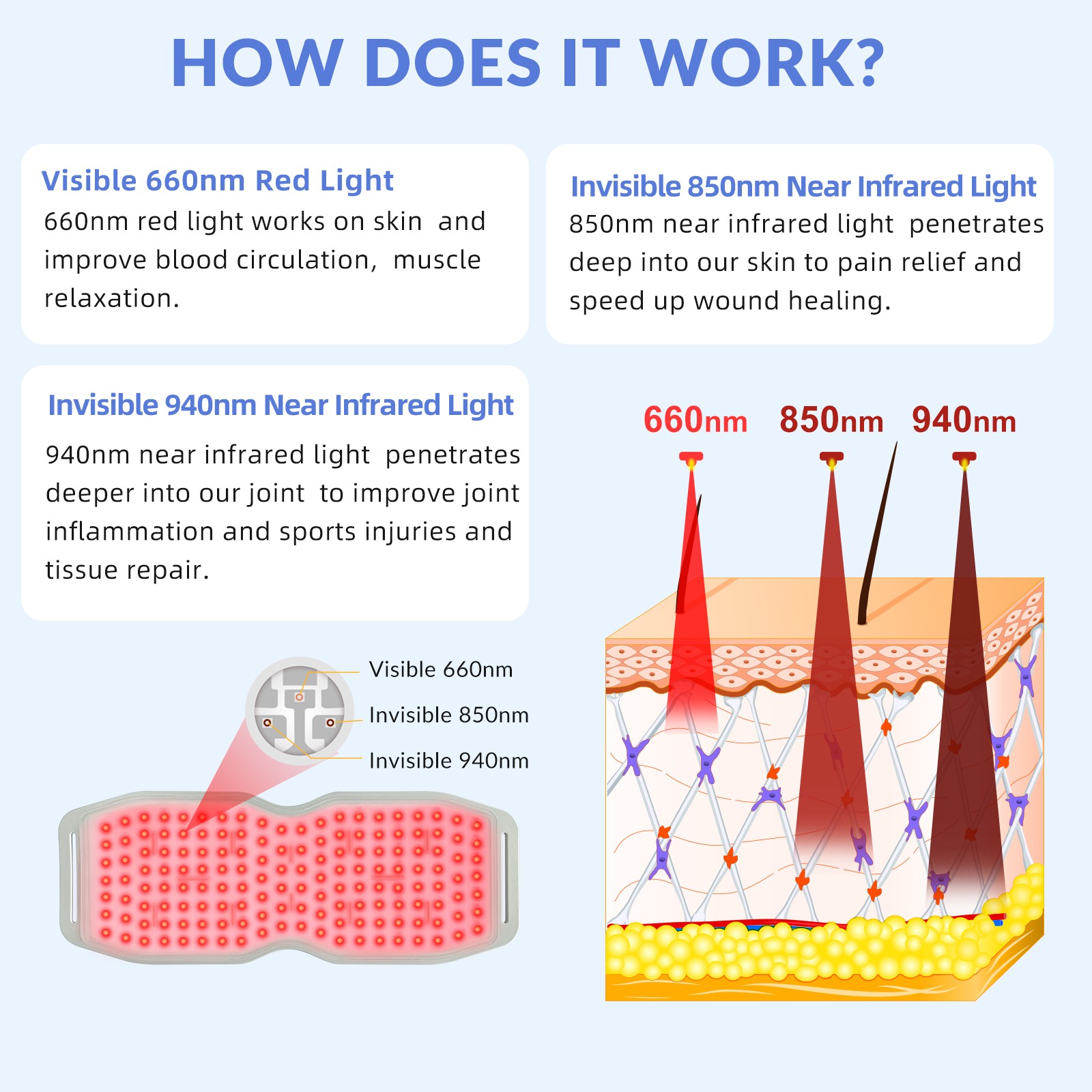 Wavelength: 150pcs 660nm LED Chips+150pcs 850nm LED Chips+150pcs 940nm LED Ch