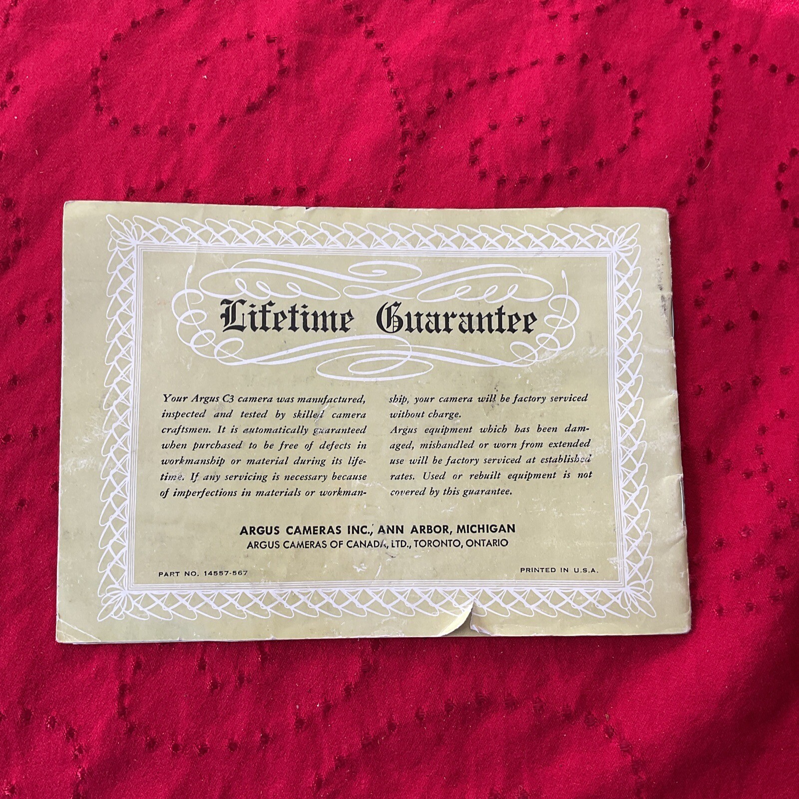 Argus C-3 35mm Camera Owner's User Instruction Manual