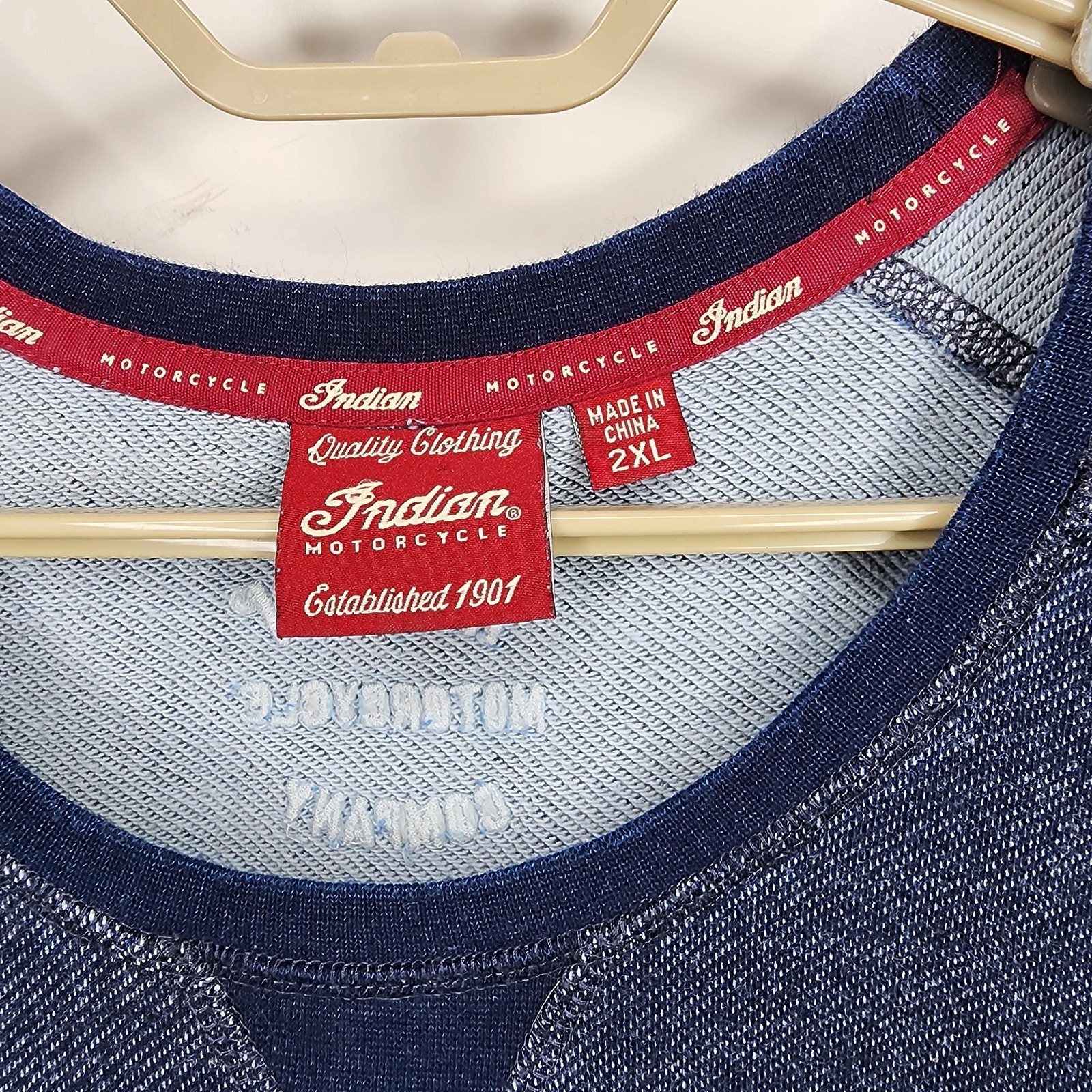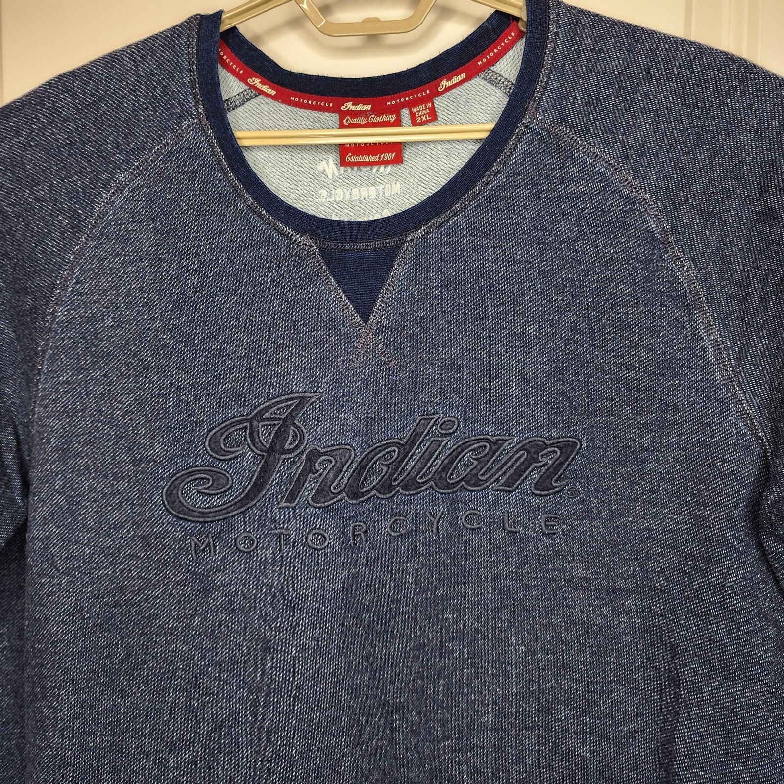 как выглядит Indian Motorcycle Sweater Mens 2XL Blue Crewneck Pullover Raglan Denim Look фото