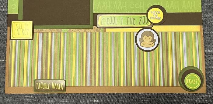 Two 12x12 Premade Scrapbook Pages Layout MONKEY BUSINESS Zoo Jungle Animal