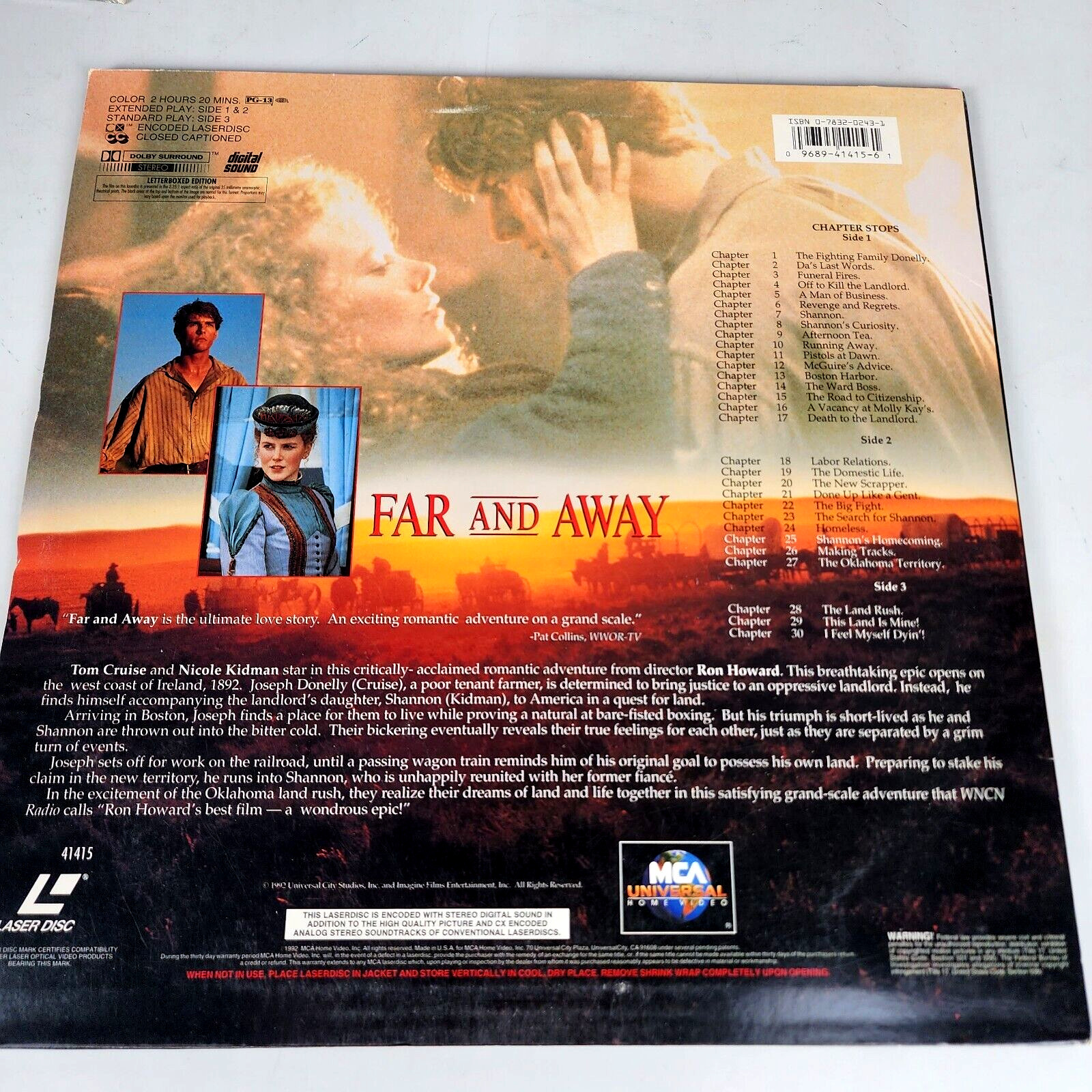 Far and Away Laserdisc Deluxe Letterbox Film 2 Tom Cruise Nicole Kidman Movie