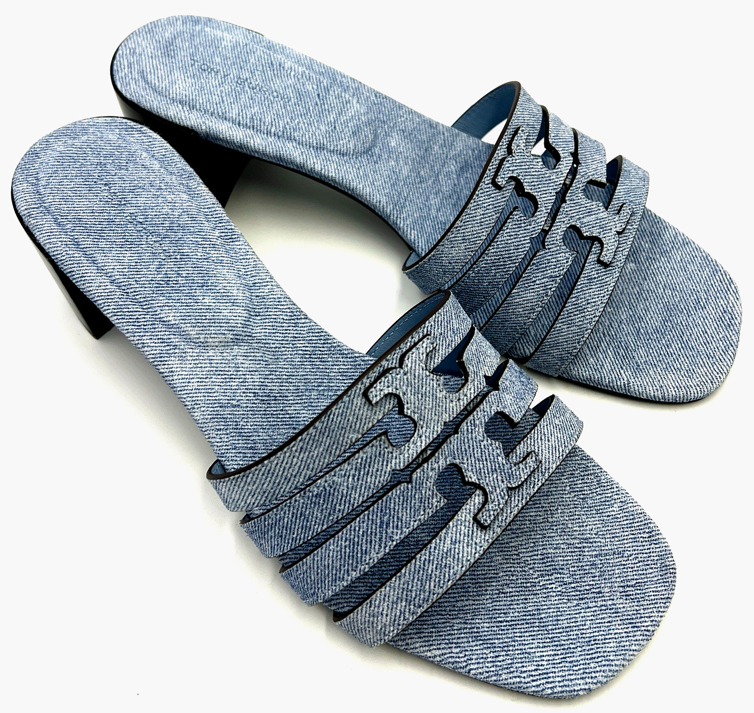 как выглядит Tory Burch Womens Ines Heel Mule Sandal 55MM Denim Suede Blue Cloud Sz US 9 NIB фото