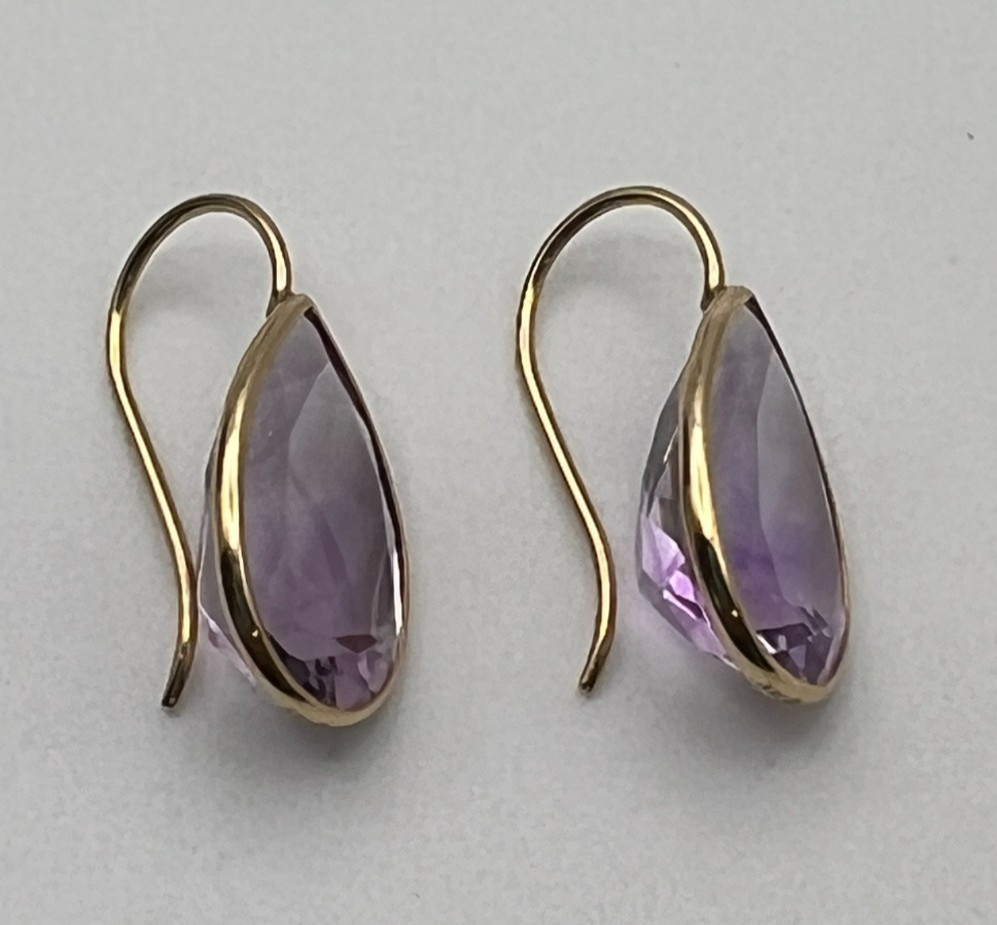 как выглядит 14 K Yellow Gold Large Amethyst Earrings - gorgeous фото