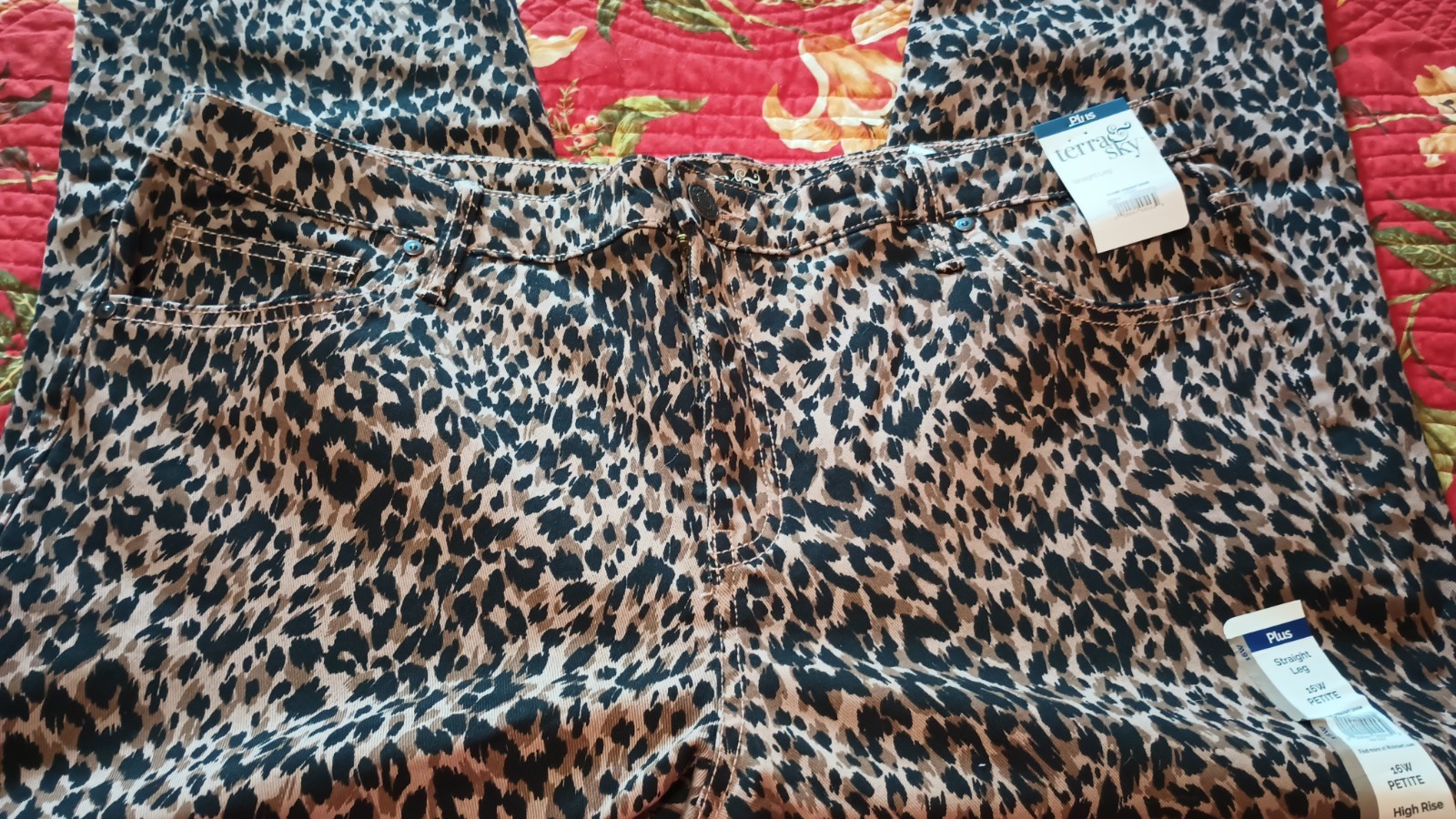 как выглядит Plus 16W Petite Straight Leg Leopard Animal Print New Stretch Jeans Terra Sky фото