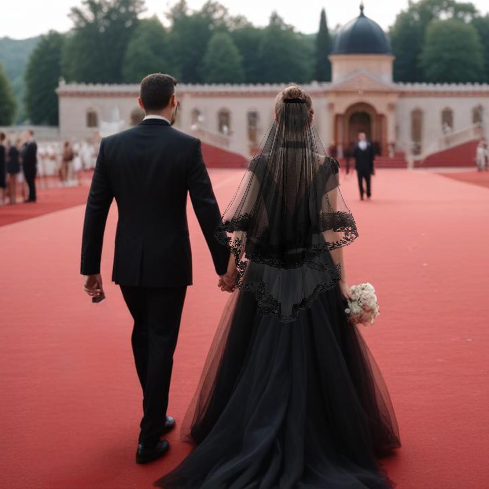 Black Lace Halloween Veil, Double Layer Mesh, Comb, Witch Costume, Headpiece