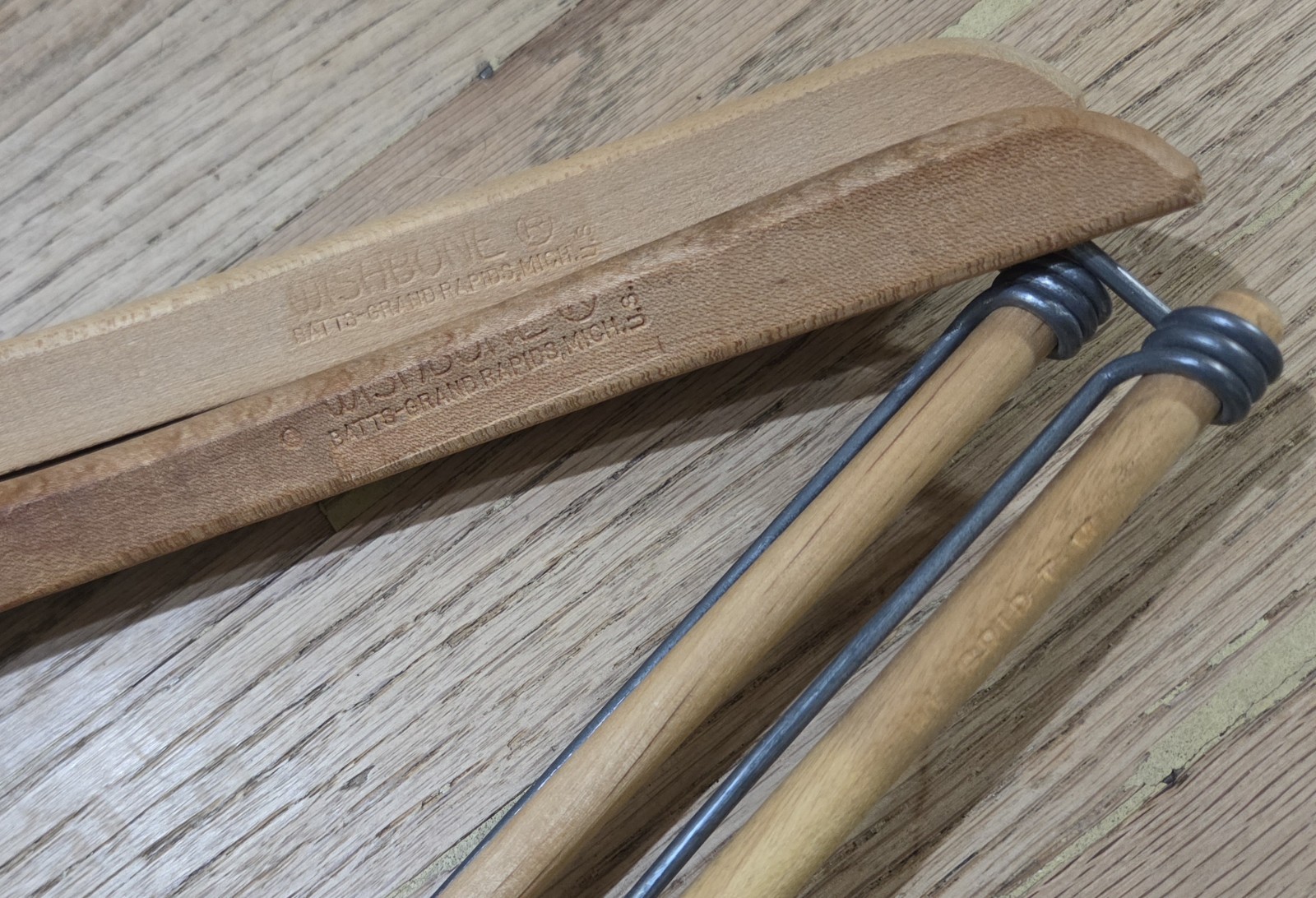 как выглядит x2 Vintage Wood Stamped Wishbone Hangers фото