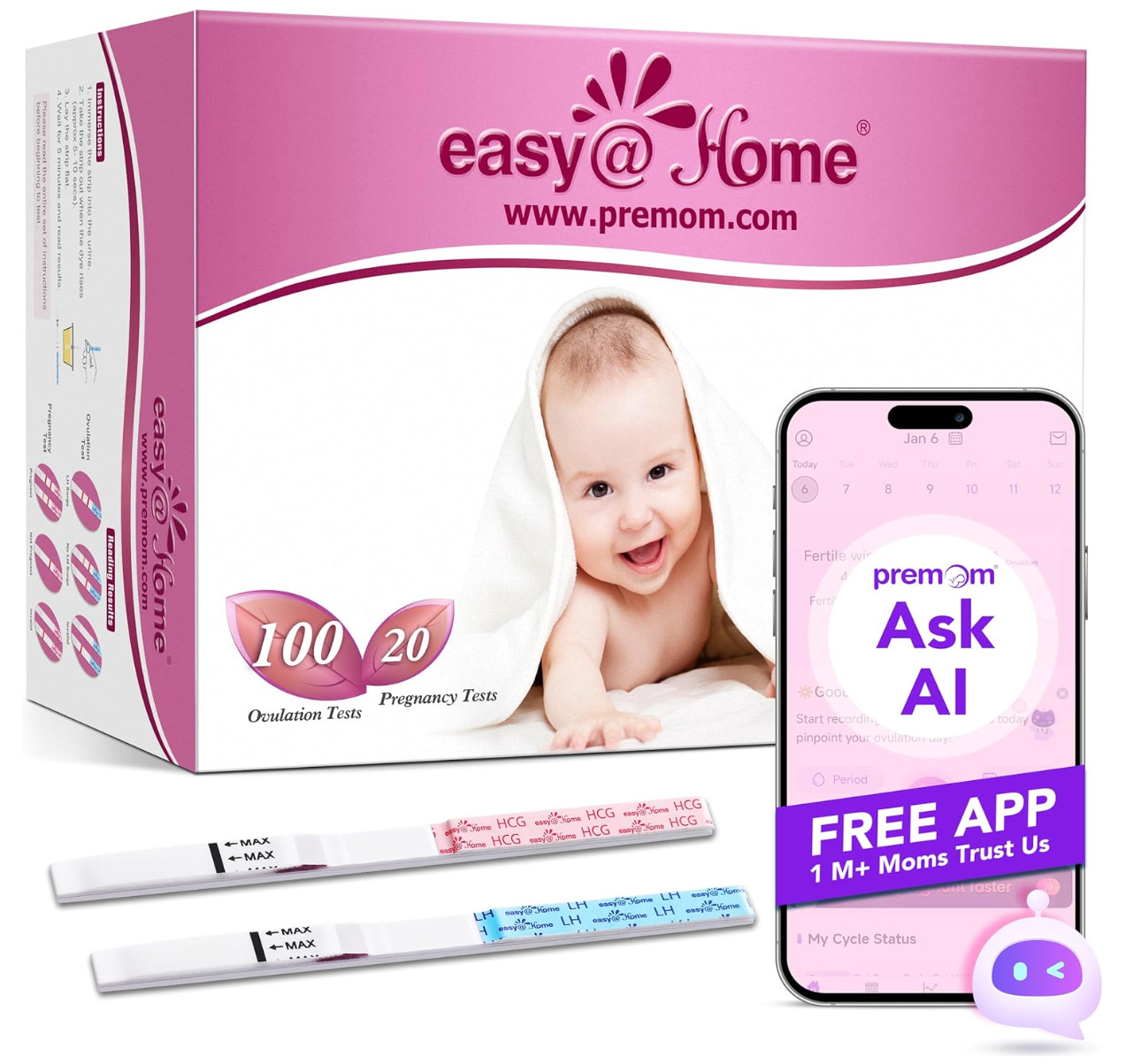 Easy Home 100 Ovulation Test Strips and 20 Pregnancy Strips - Premom App