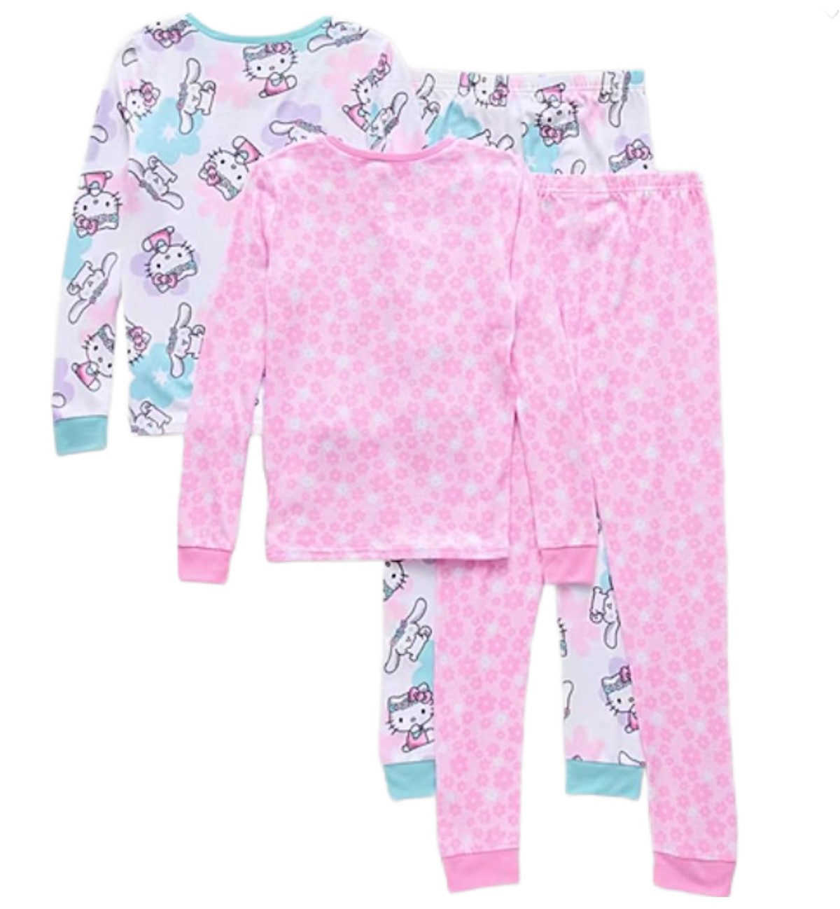 Hello Kitty and Cinnamoroll Girl's 4-Pc Long-Sleeved Floral Character Pajama Set