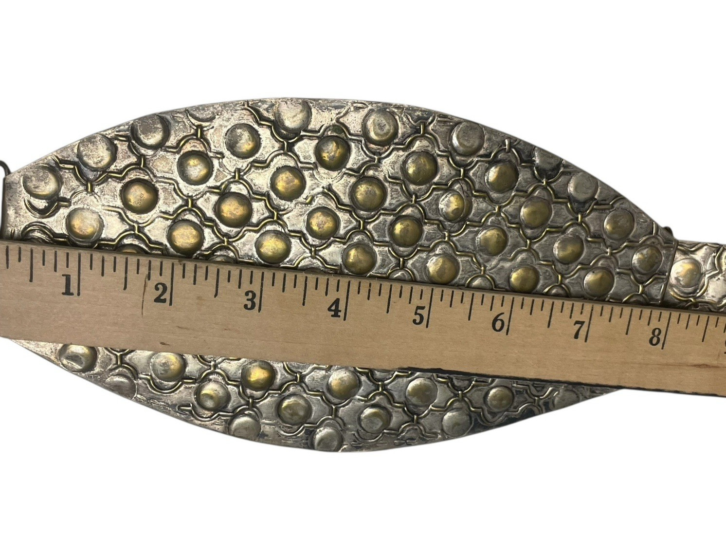 Vintage Wide Metal Textured Medallion Belt Size S/M 36L Waist Cinch Boho Adjs