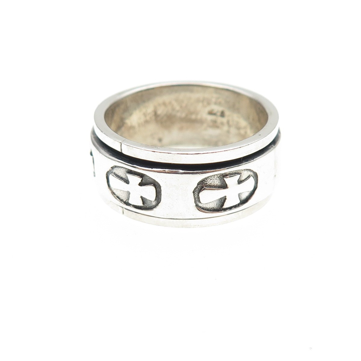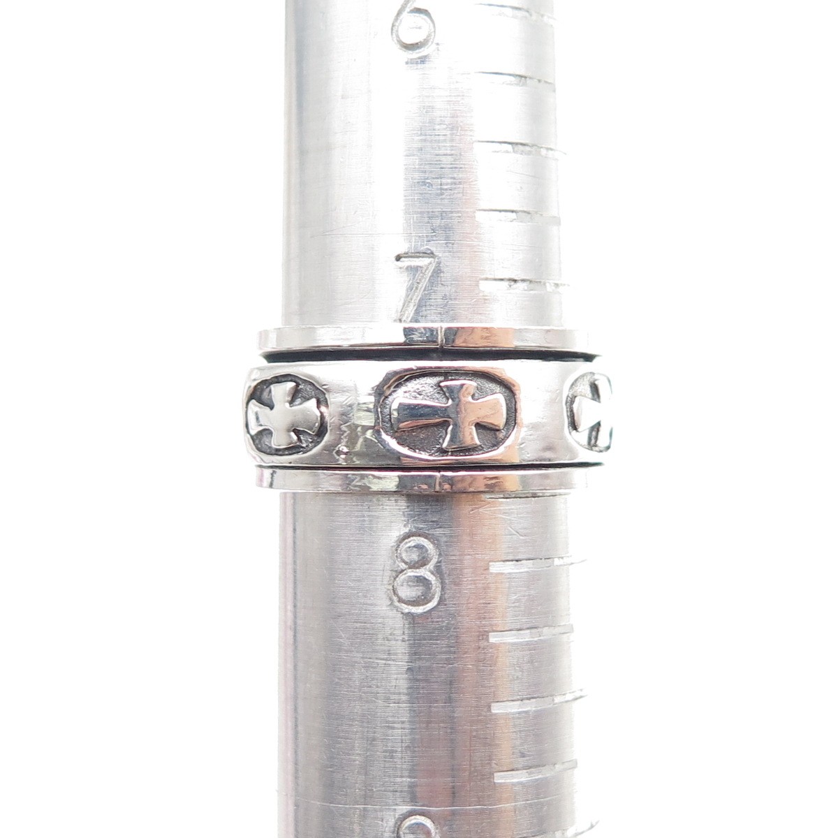 925 Sterling Silver Vintage Cross Oxidized Rotating Band Ring Size 7.75
