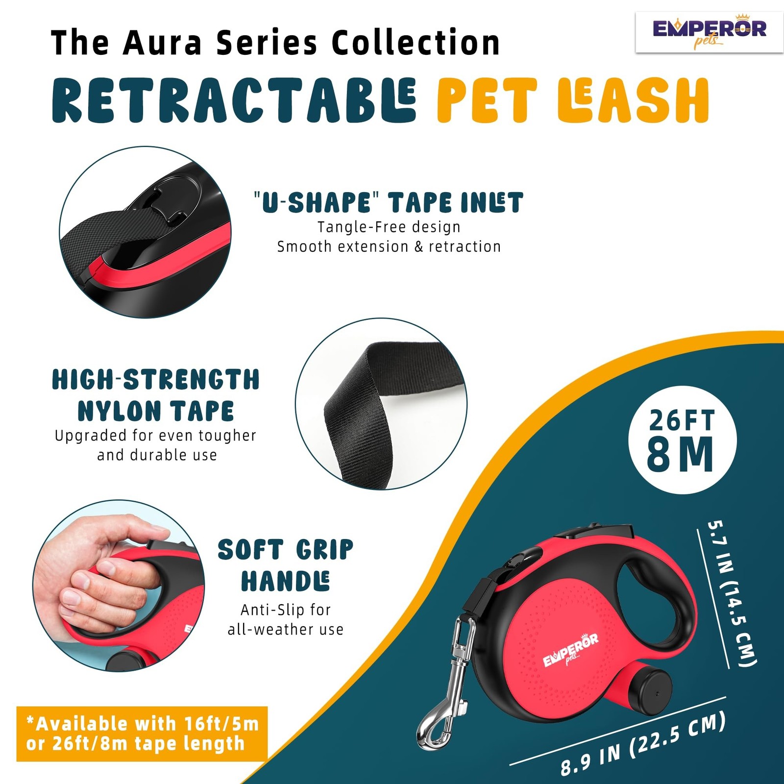 Emperor Pets 26 ft Retractable Dog Leash Red - Heavy Duty Retractab... Fast Ship