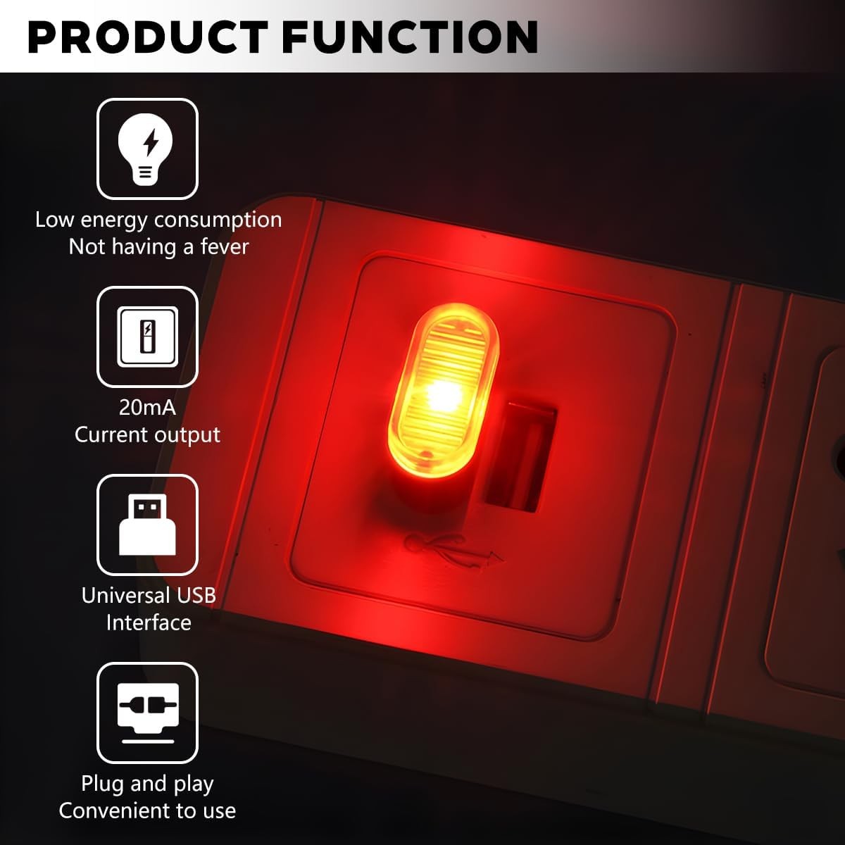 • 4PCS USB LED Car Interior Atmosphere Lamp, Portable Plug-In Mini Vehicle Night L