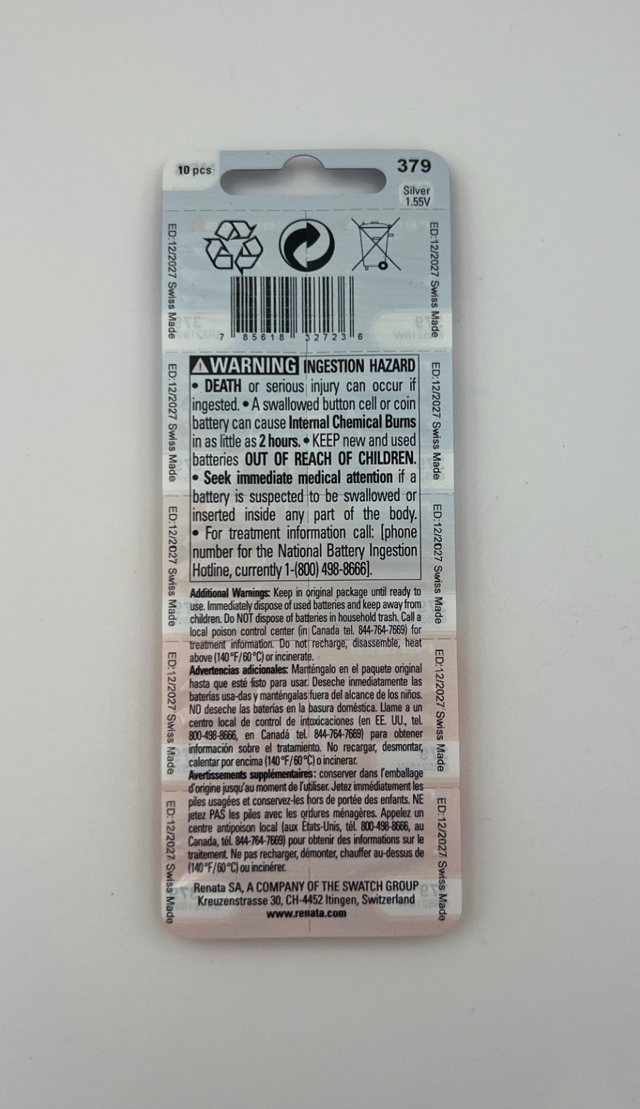 10 Renata 379 SR521SW Silver Oxide 1.55V Low Drain Coin Cell Batterie Exp 2027