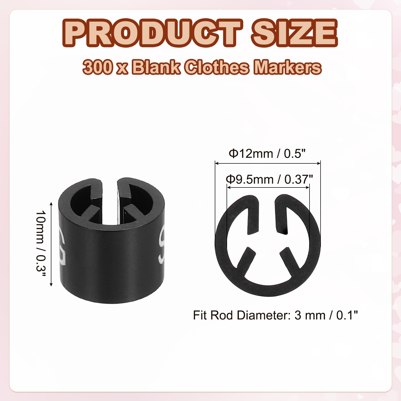 300Pcs SG Size Clothes Hanger Marker Fit 3mm Rod for Garment Coding Black