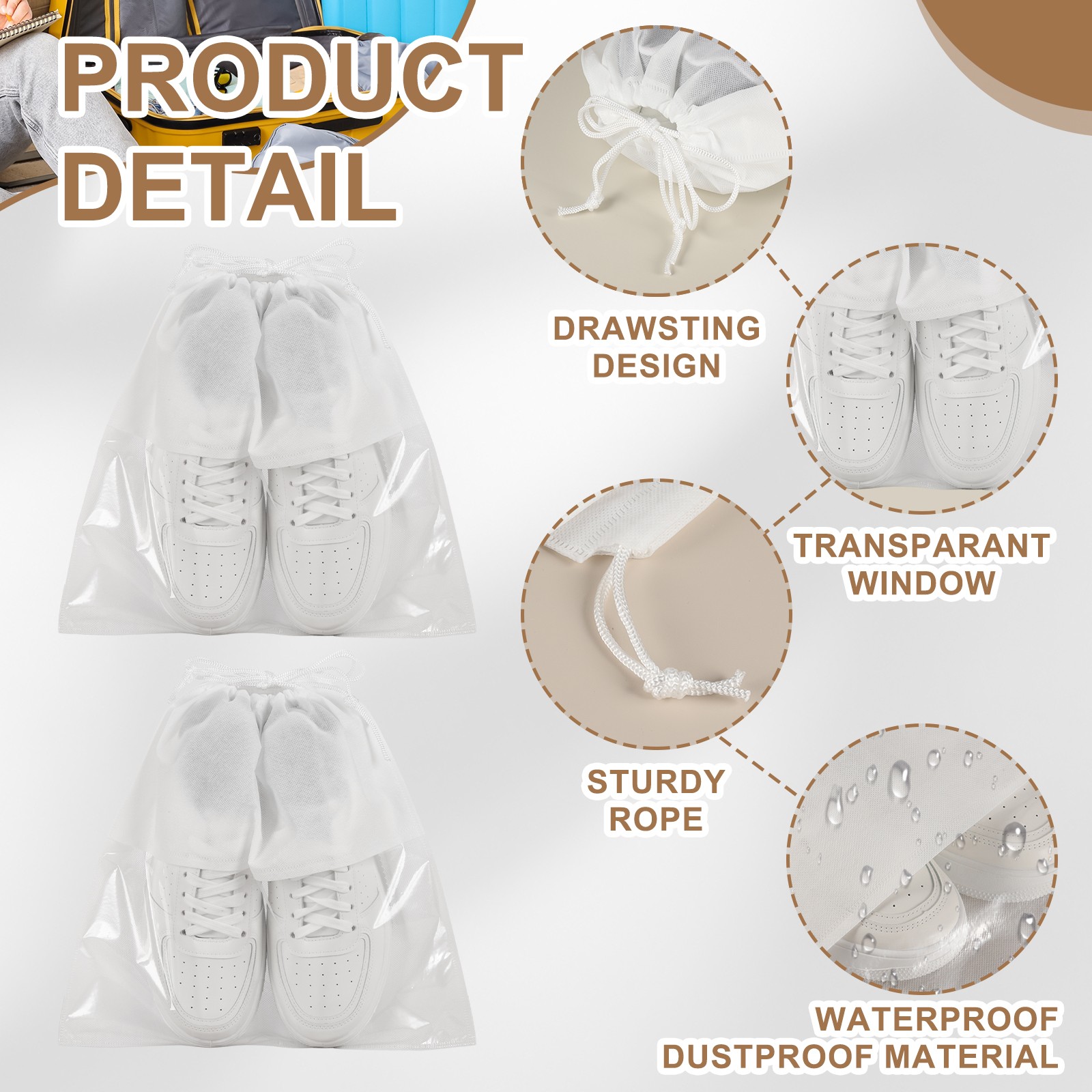12 Pcs 12 Shoe Bags for Travel Dustproof Drawstring Bags Dust Cover White