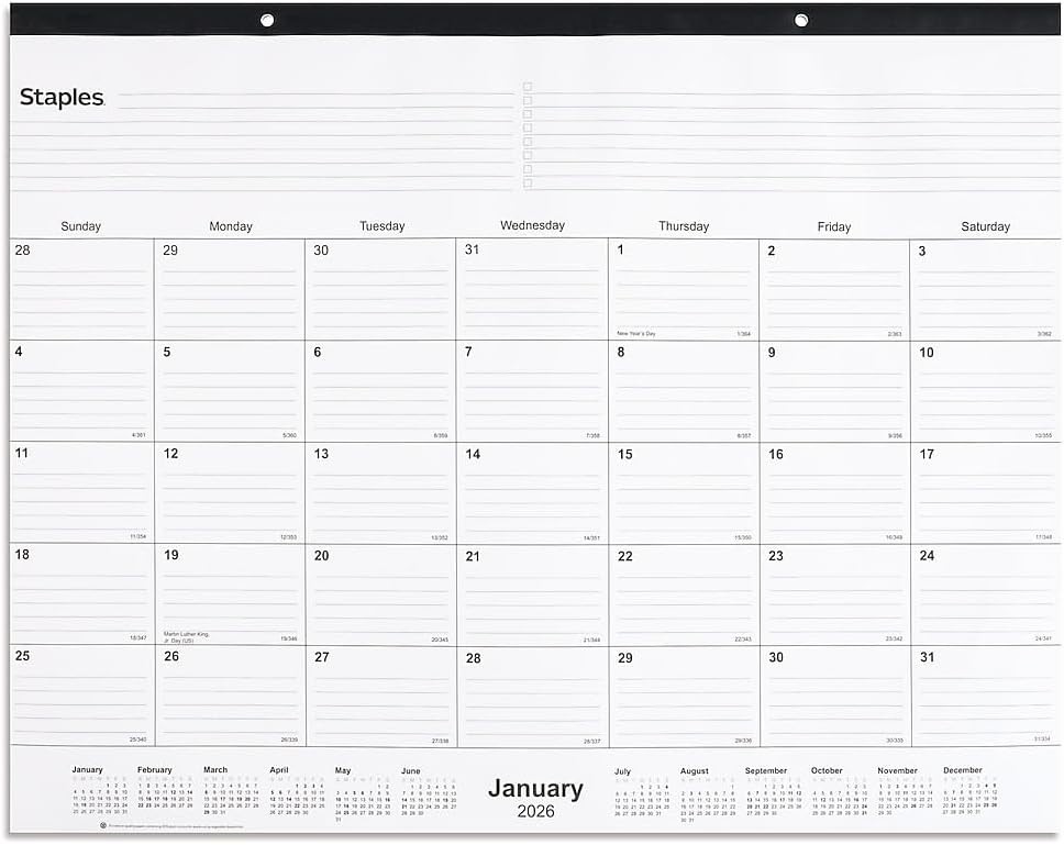 Staples 2026 Year 21.75 X 17 Monthly Desk Pad Calendar, White/Black NEW