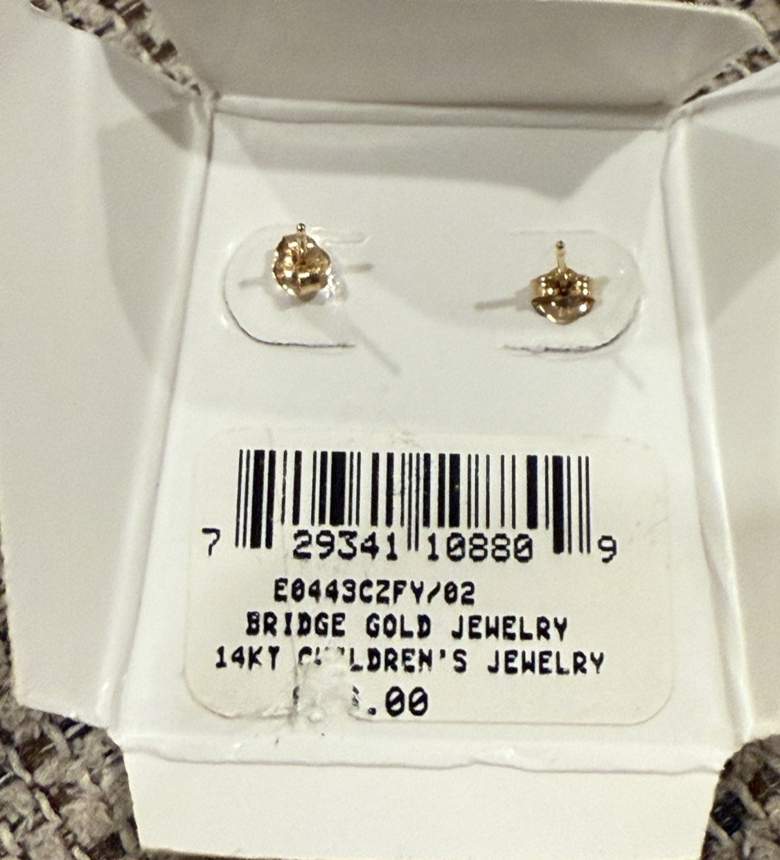 Solid 14K Yellow Gold Children's Earrings Studs 4.92 mm Cubic Zirconias