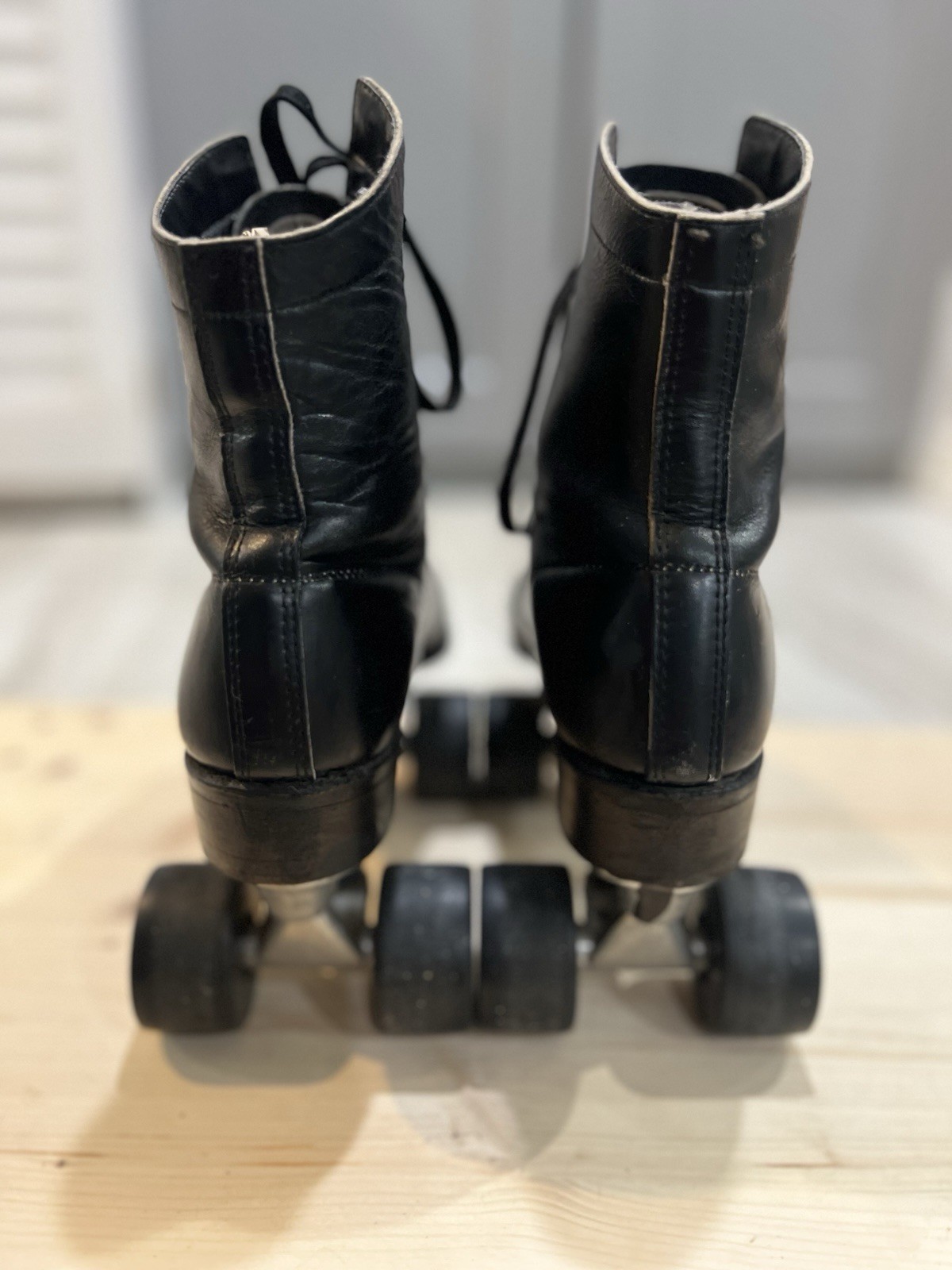 Vintage Pacer Roller Skates Black Leather High Top Size 6 Retro Quad Skates Rare