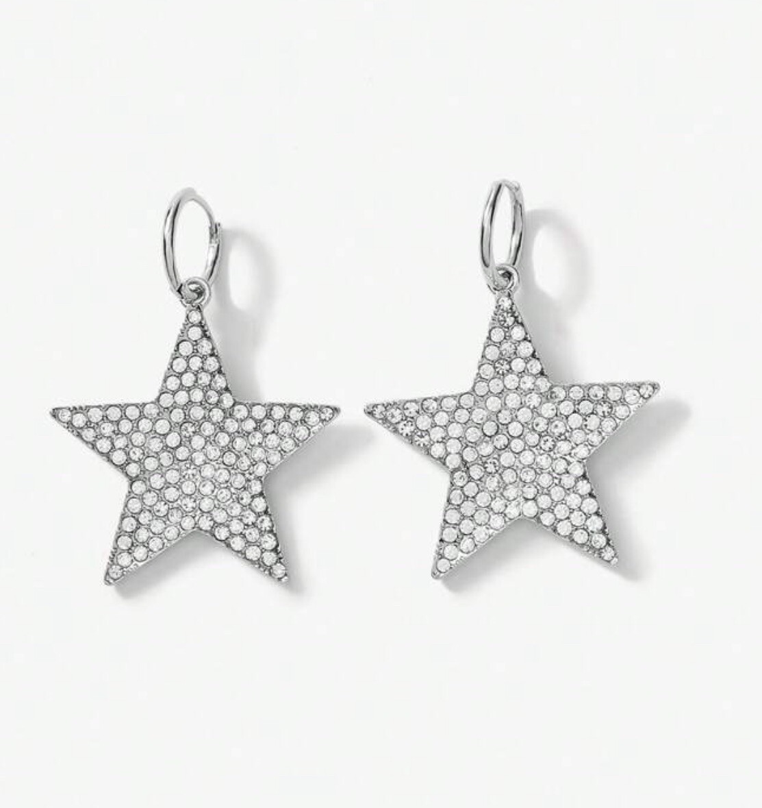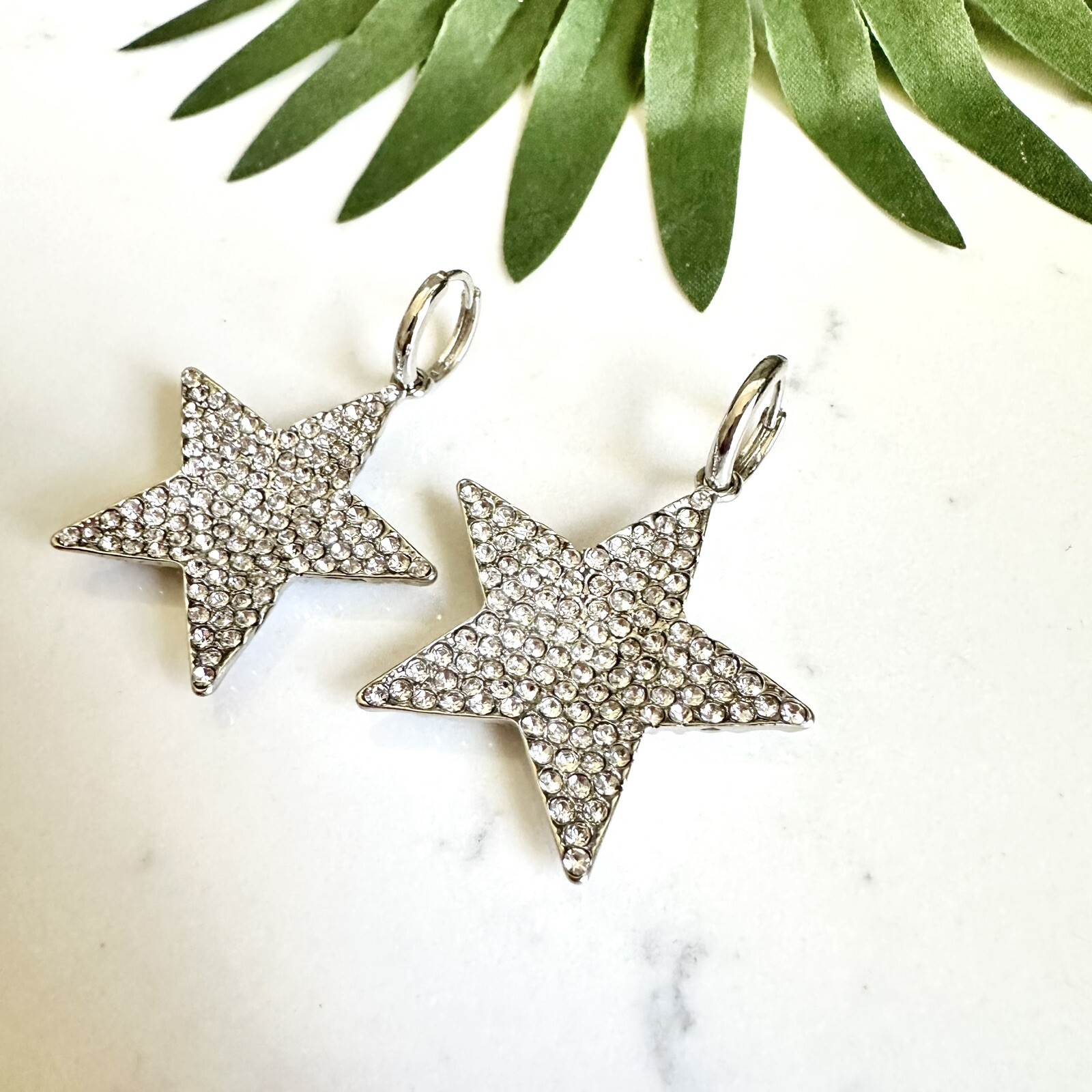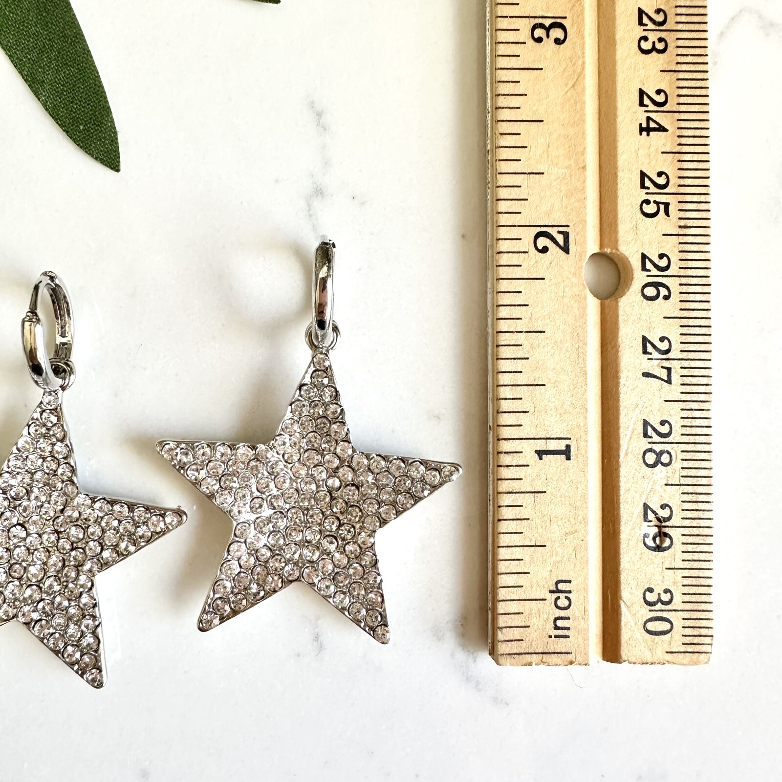 Silver Star Earrings Rhinestone Big Stars Huggie Hoop Jewelry Gift Boho NEW