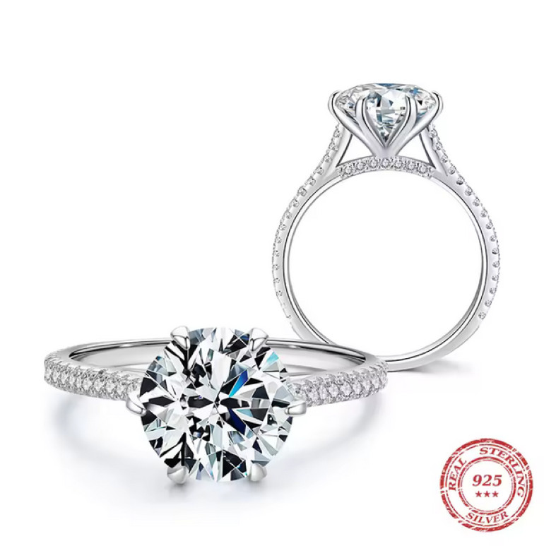 как выглядит Luxurious 925 Sterling Silver 3CT Sparkling Zirconia Solitaire Ring /Size 5-8.75 фото