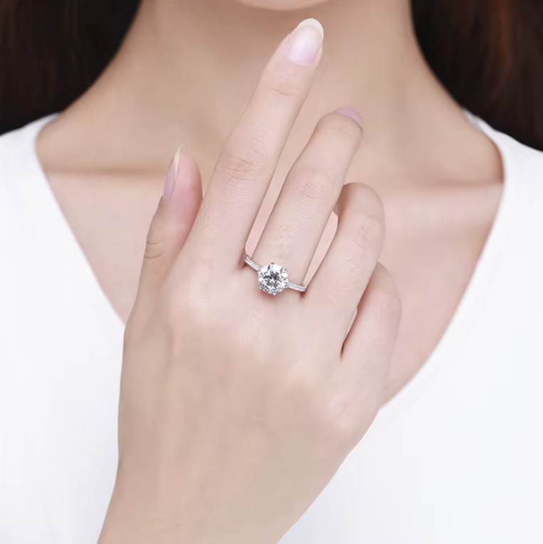 Luxurious 925 Sterling Silver 3CT Sparkling Zirconia Solitaire Ring /Size 5-8.75